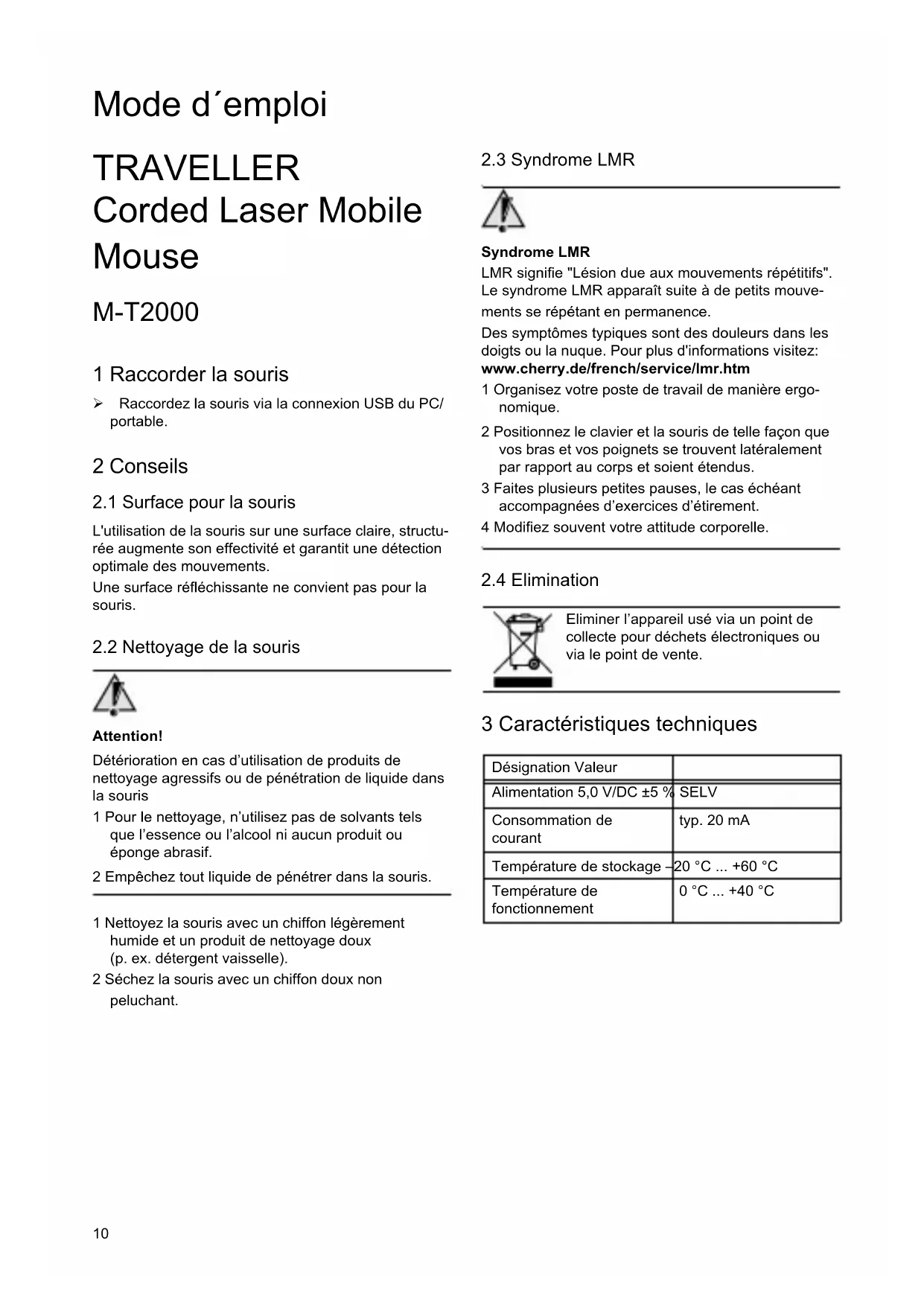 TRAVELLER - Souris d'ordinateur Cherry - Notice d'utilisation et mode d'emploi gratuit
