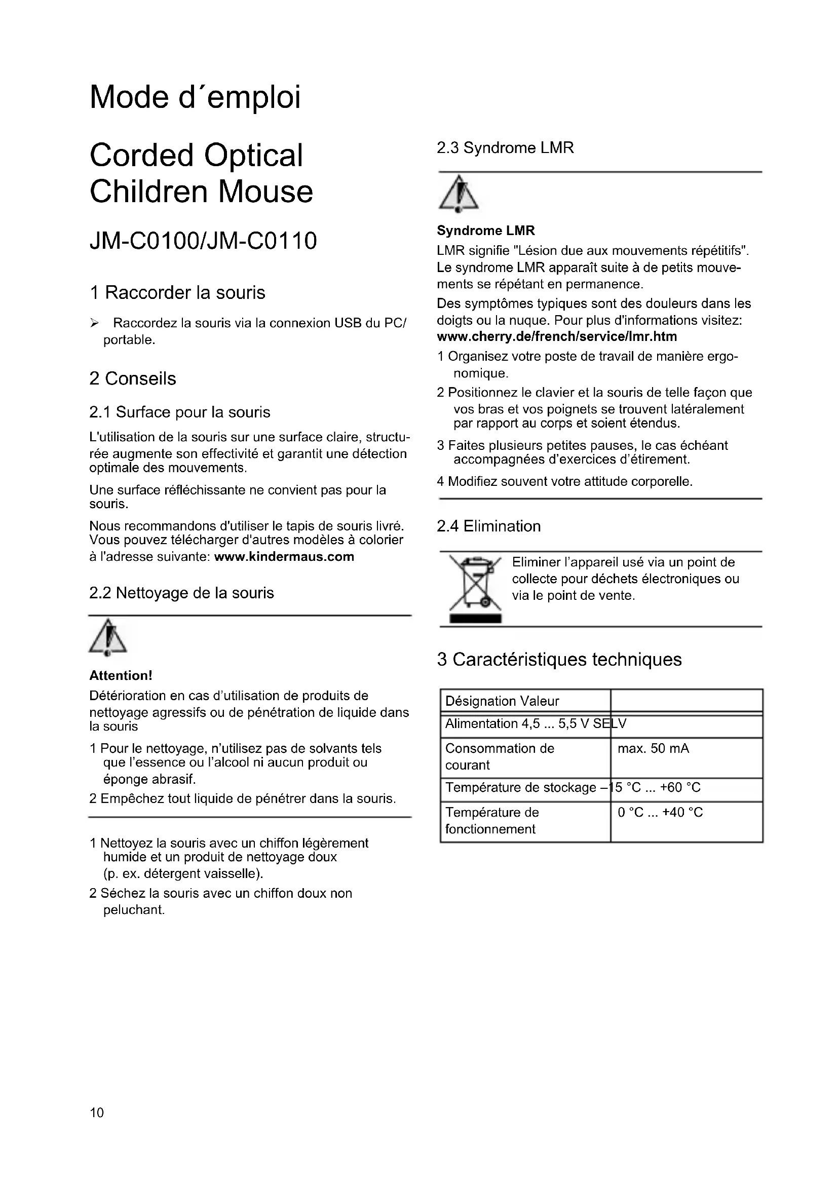 JMC0110 - Souris d'ordinateur Cherry - Notice d'utilisation et mode d'emploi gratuit