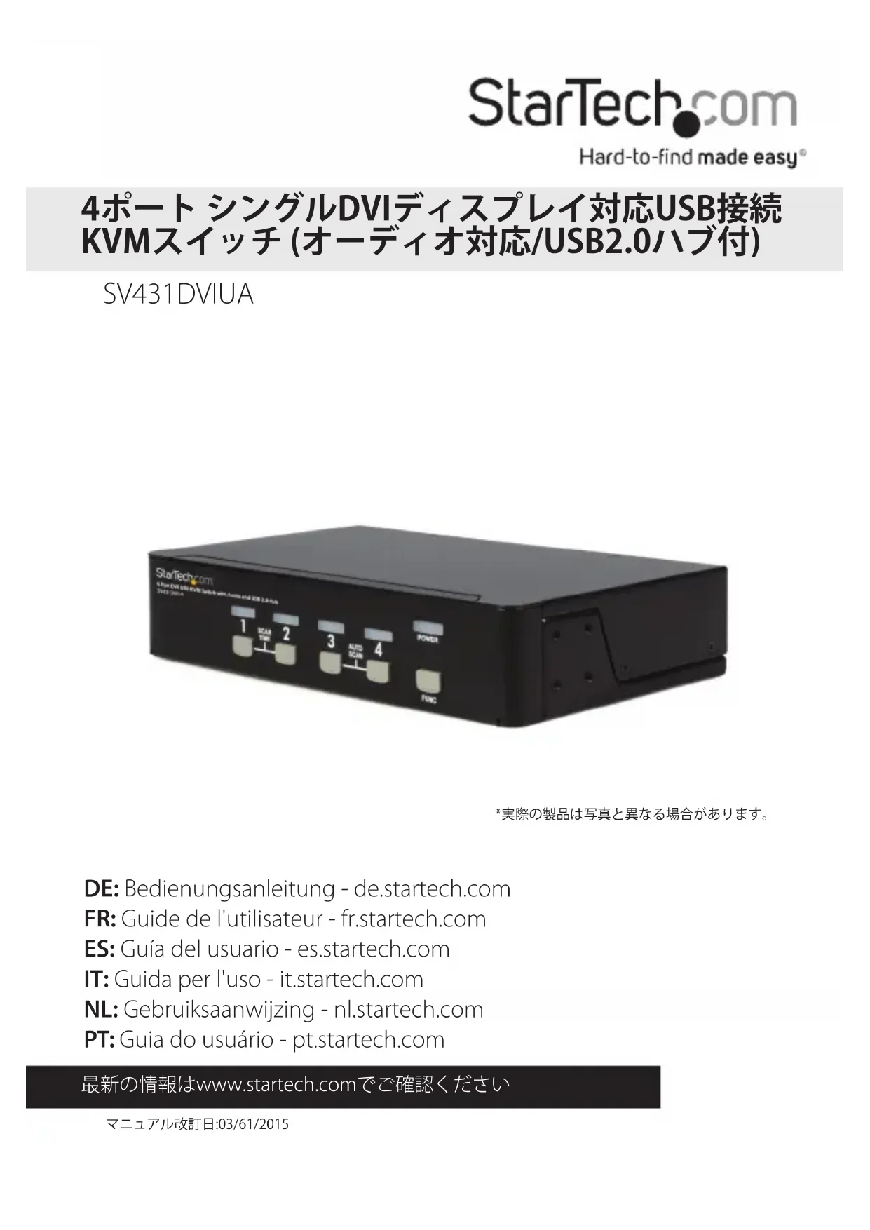 SV431DVIUA - Commutateur StarTech.com - Notice d'utilisation et mode d'emploi gratuit