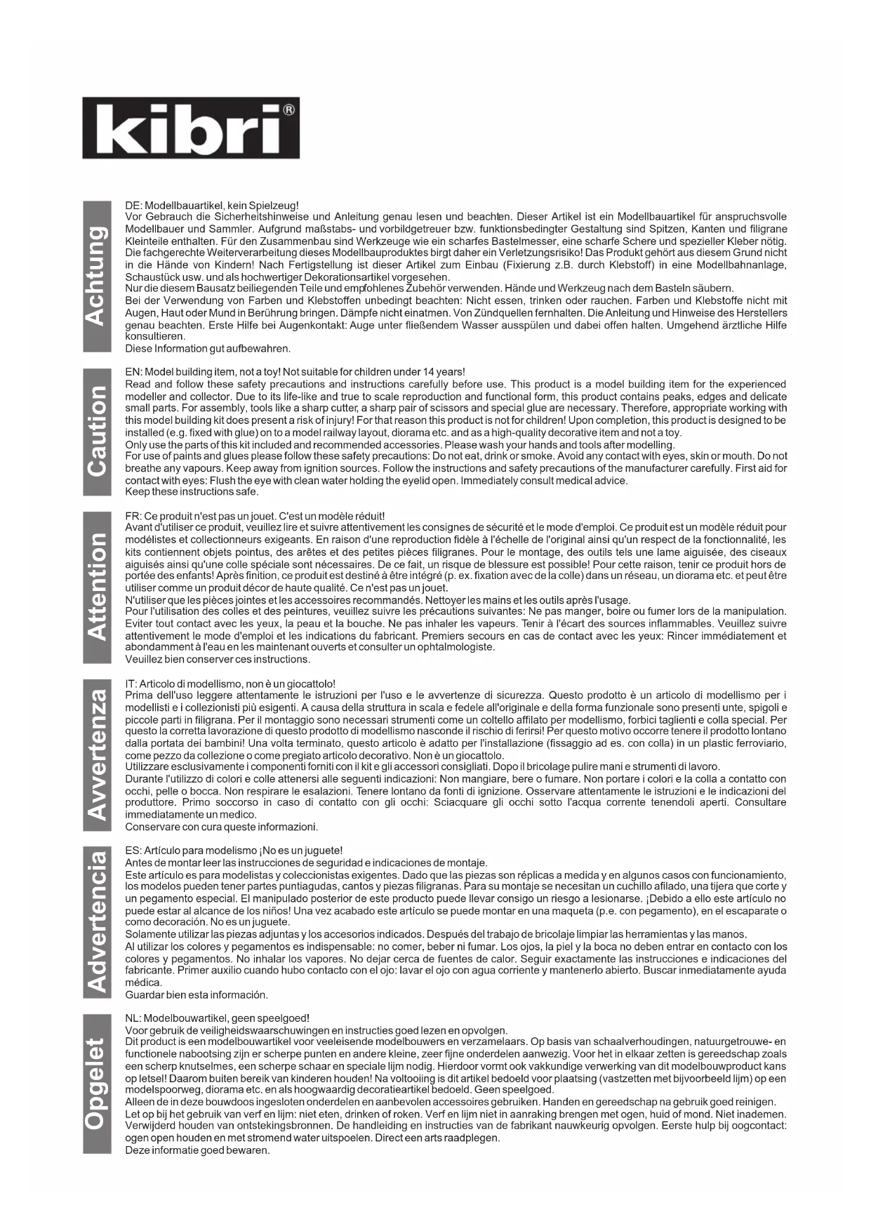 Le Kibri 10922 est recommandé pour les enfants de plus de 14 ans en raison de la complexité du montage et des petites pièces.