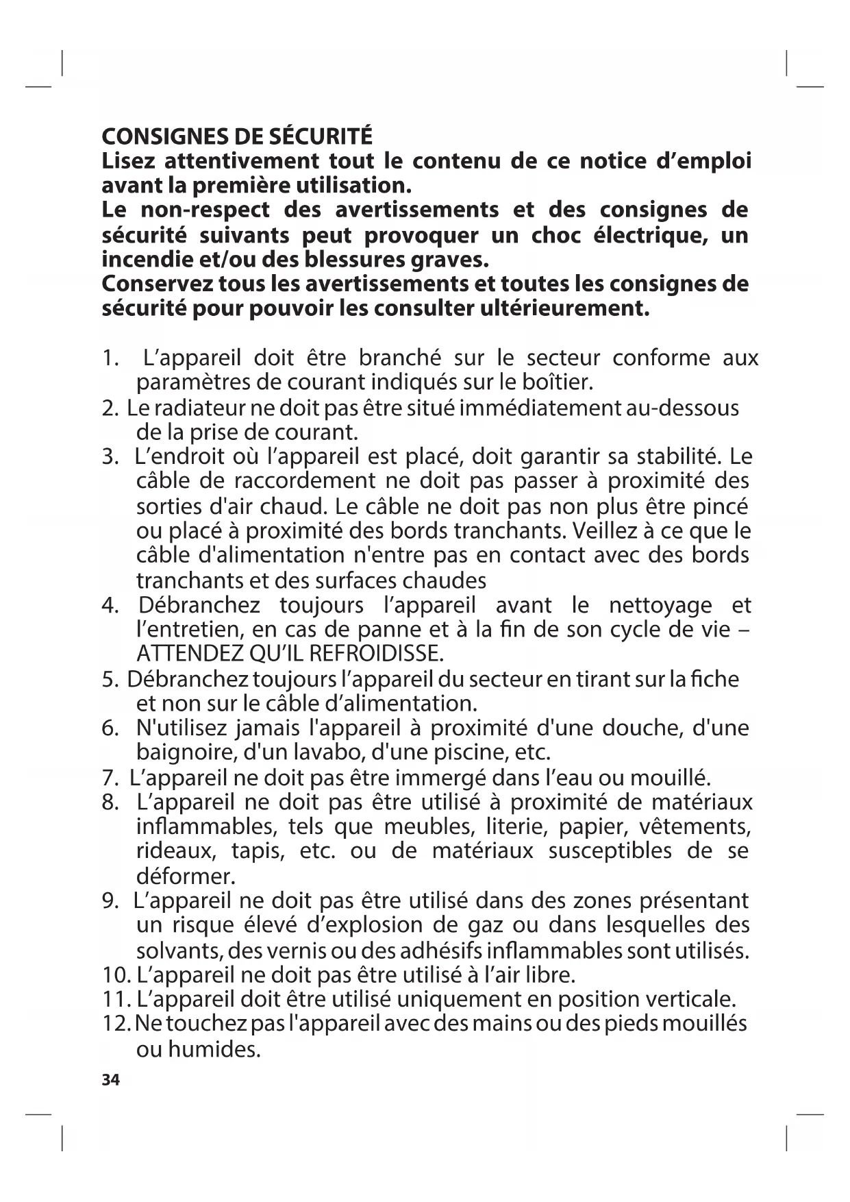 30. Le radiateur ne doit pas être utilisé dans une pièce dont la