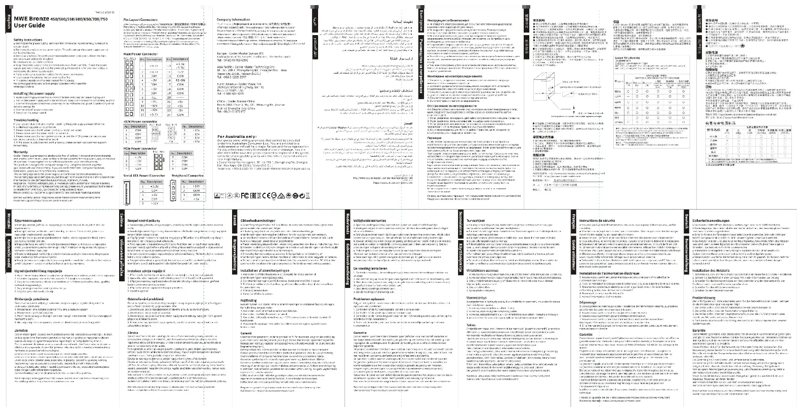 Retrouvez gratuitement la notice de l'appareil MWE Bronze 550 COOLER MASTER au format PDF.