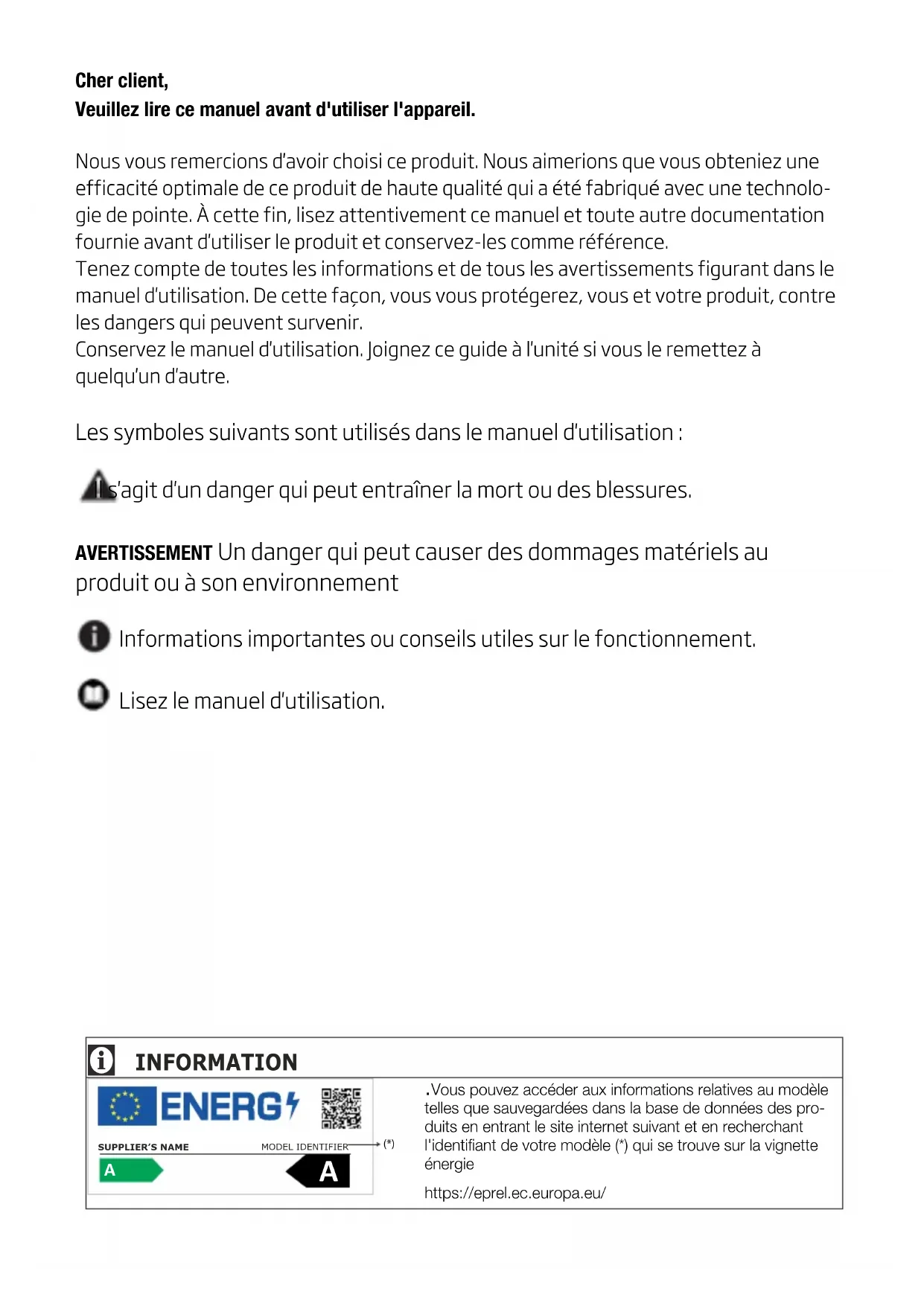 Les produits électriques sont dangereux pour les enfants et les animaux domestiques. Les enfants et les animaux domestiques ne doivent pas jouer avec le produit, ni grimper dessus, ni y entrer.