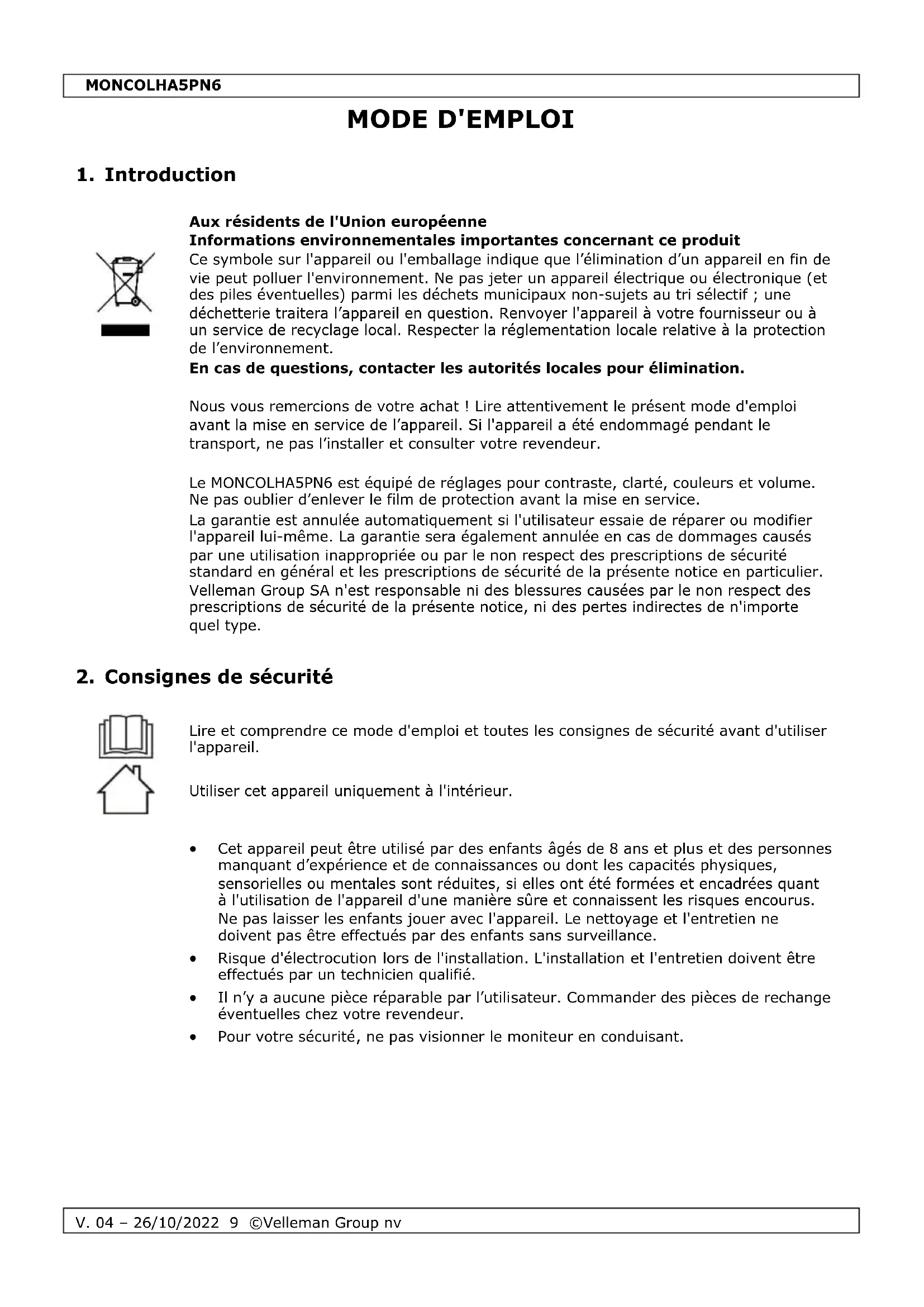V. 04 – 26/10/2022 10 ©Velleman Group nv