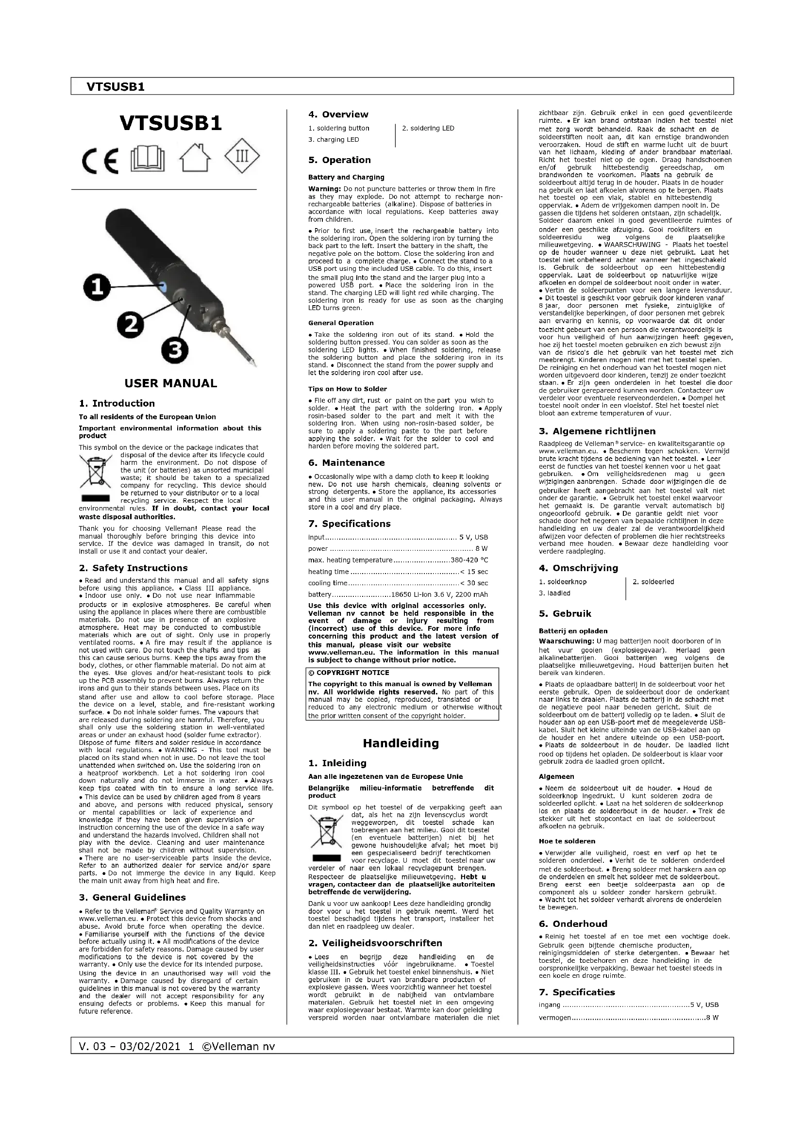 VTSUSB1 - Machine de soudure VELLEMAN - Notice d'utilisation et mode d'emploi gratuit