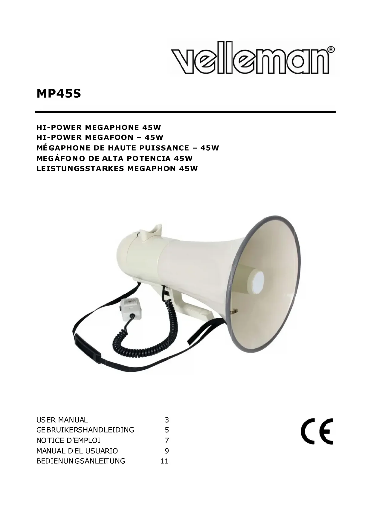 MP45S - Mégaphone VELLEMAN - Notice d'utilisation et mode d'emploi gratuit