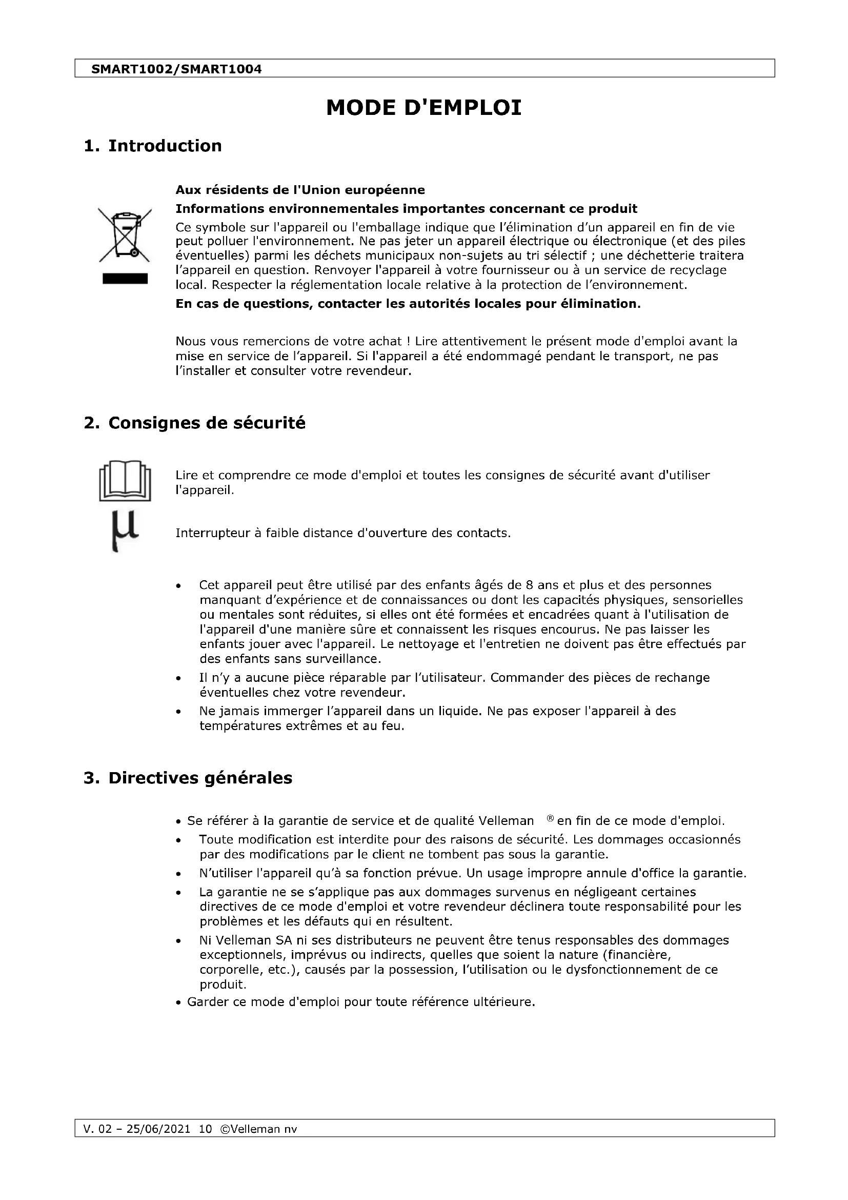 - Garder ce mode d'emploi pour toute référence ultérieure.SMART1002/SMART1004