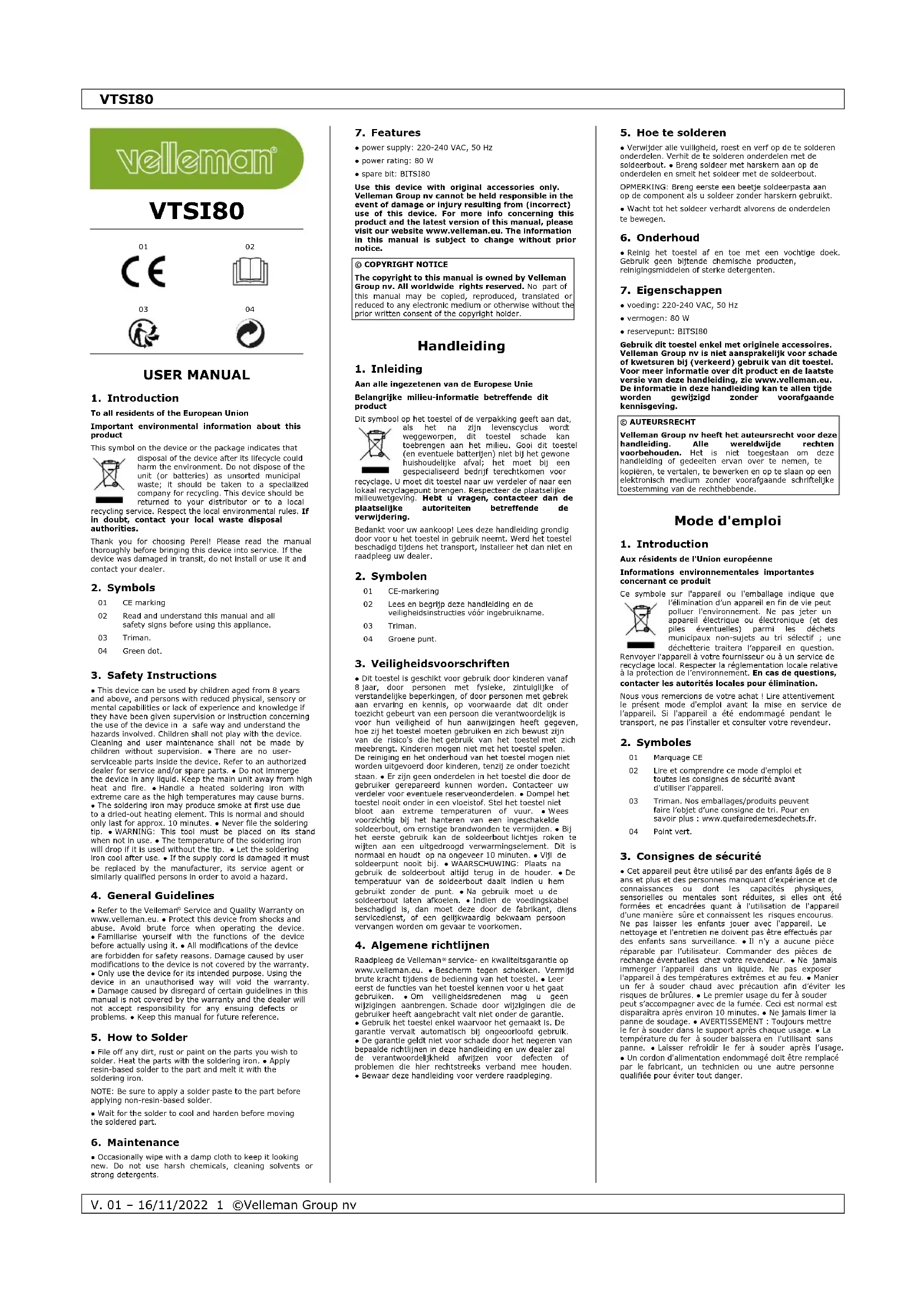 V. 01 – 16/11/2022 2 ©Velleman Group nv