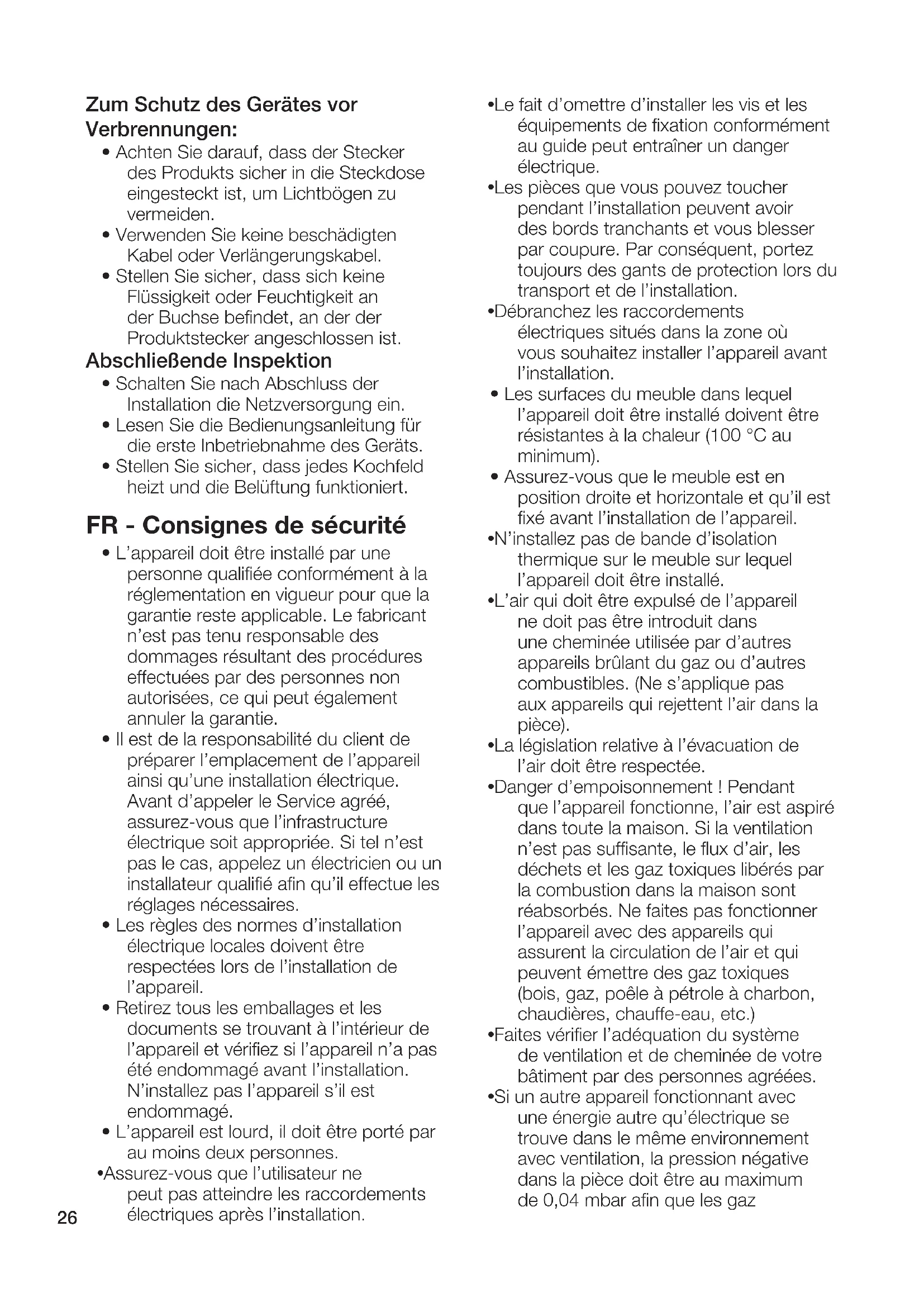 - Si un autre appareil fonctionnant avec une énergie autre qu’électrique se trouve dans le même environnement avec ventilation, la pression négative dans la pièce doit être au maximum de 0,04 mbar afin que les gaz27 d’échappement de l’autre appareil ne soient pas aspirés dans la pièce par la ventilation.