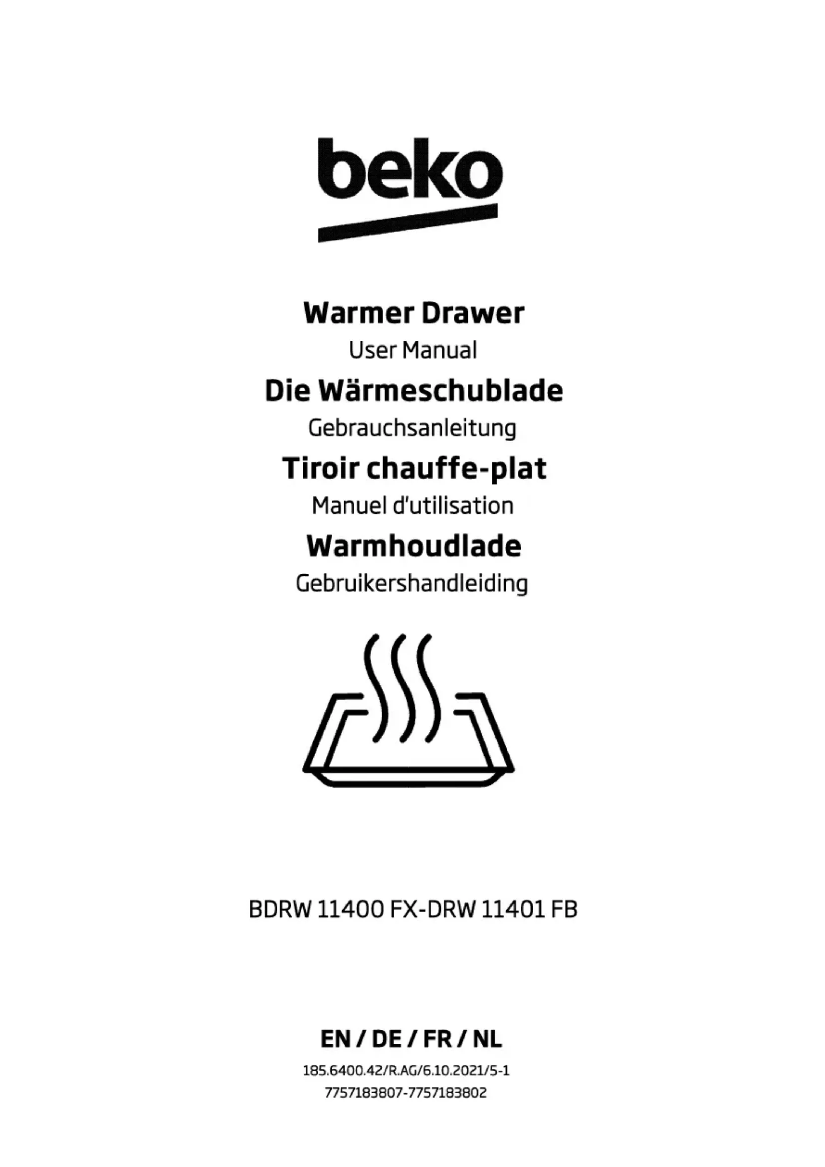 BDRW 11400 FX - Tiroir et armoire chauffants BEKO - Notice d'utilisation et mode d'emploi gratuit
