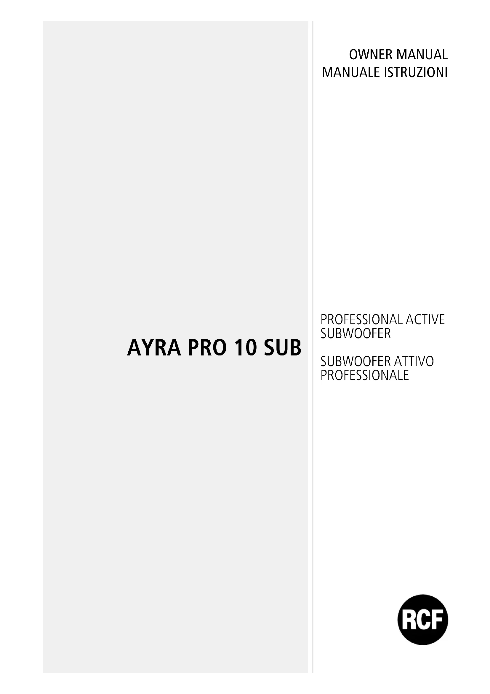 Ayra Pro 10 Sub - Caisson de basses RCF - Notice d'utilisation et mode d'emploi gratuit