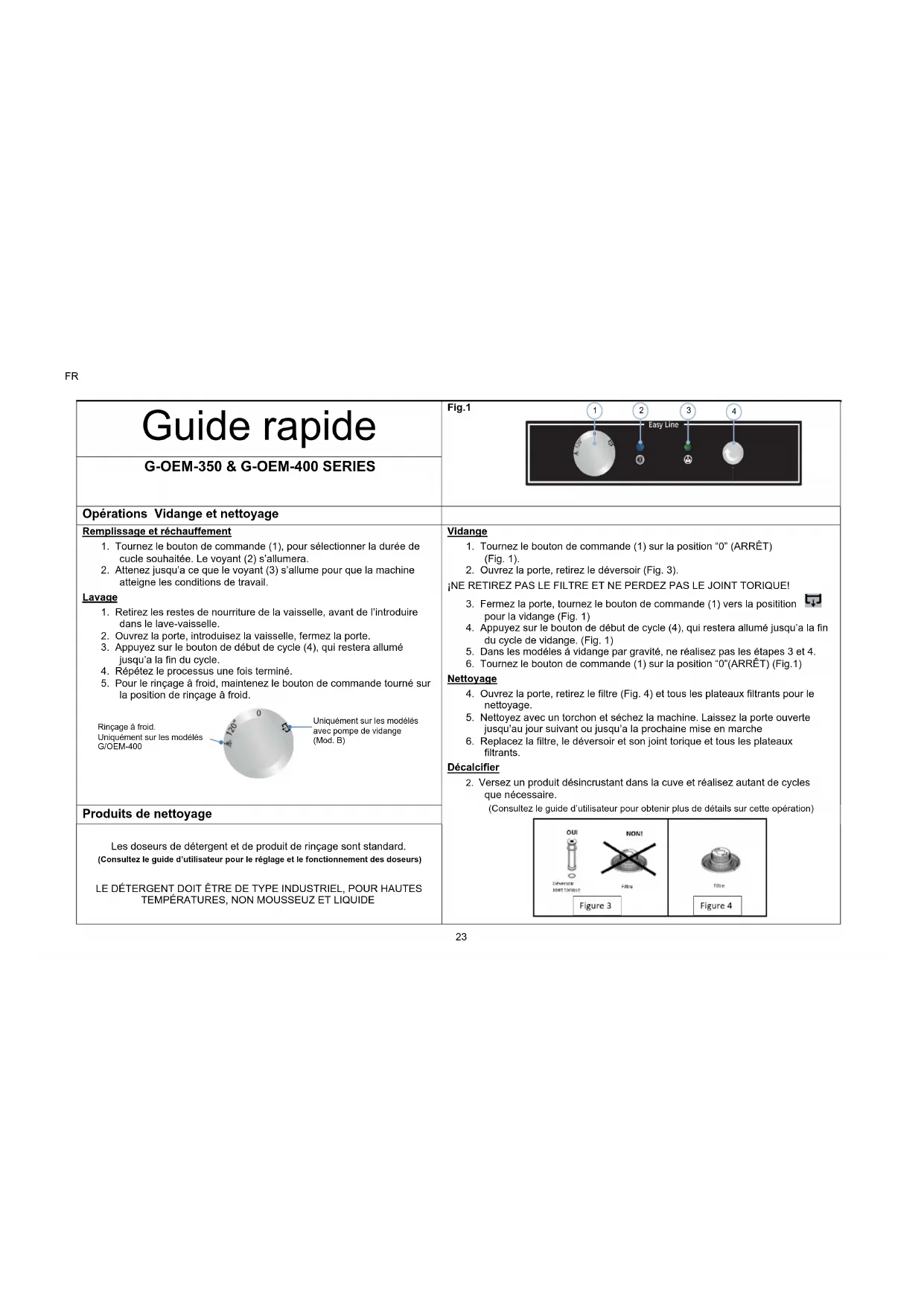 Rinçage â froid. Uniquément sur les modélés G/OEM-400 Uniquément sur les modélés avec pompe de vidange (Mod. B)FR