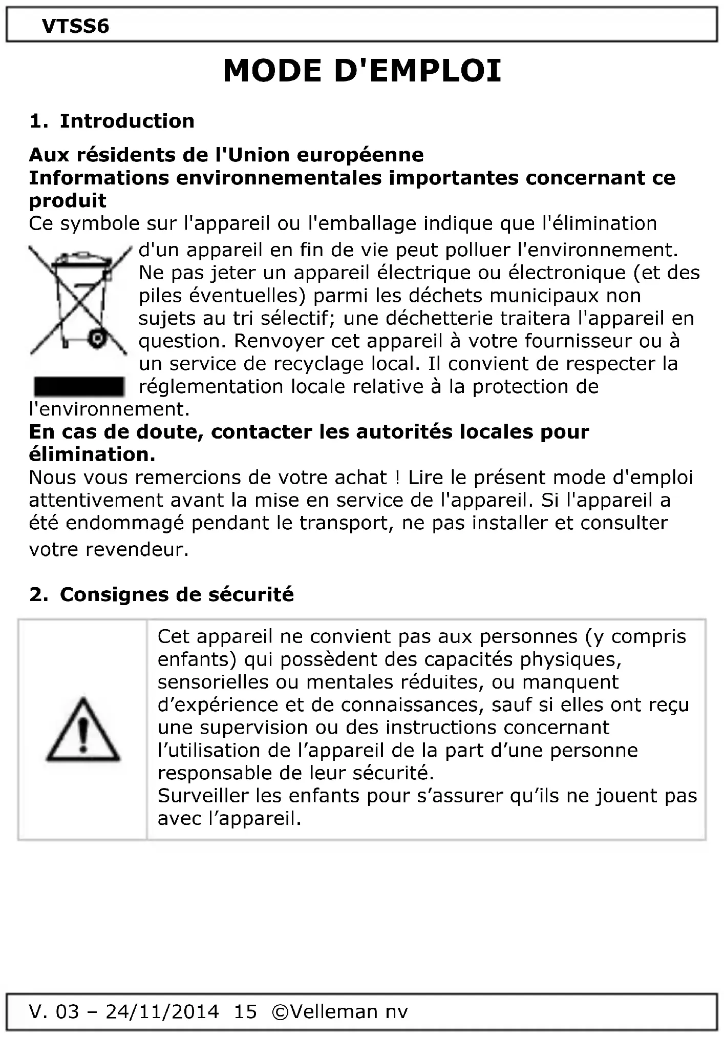 MODE D'EMPLOI VTSS6 VELLEMAN