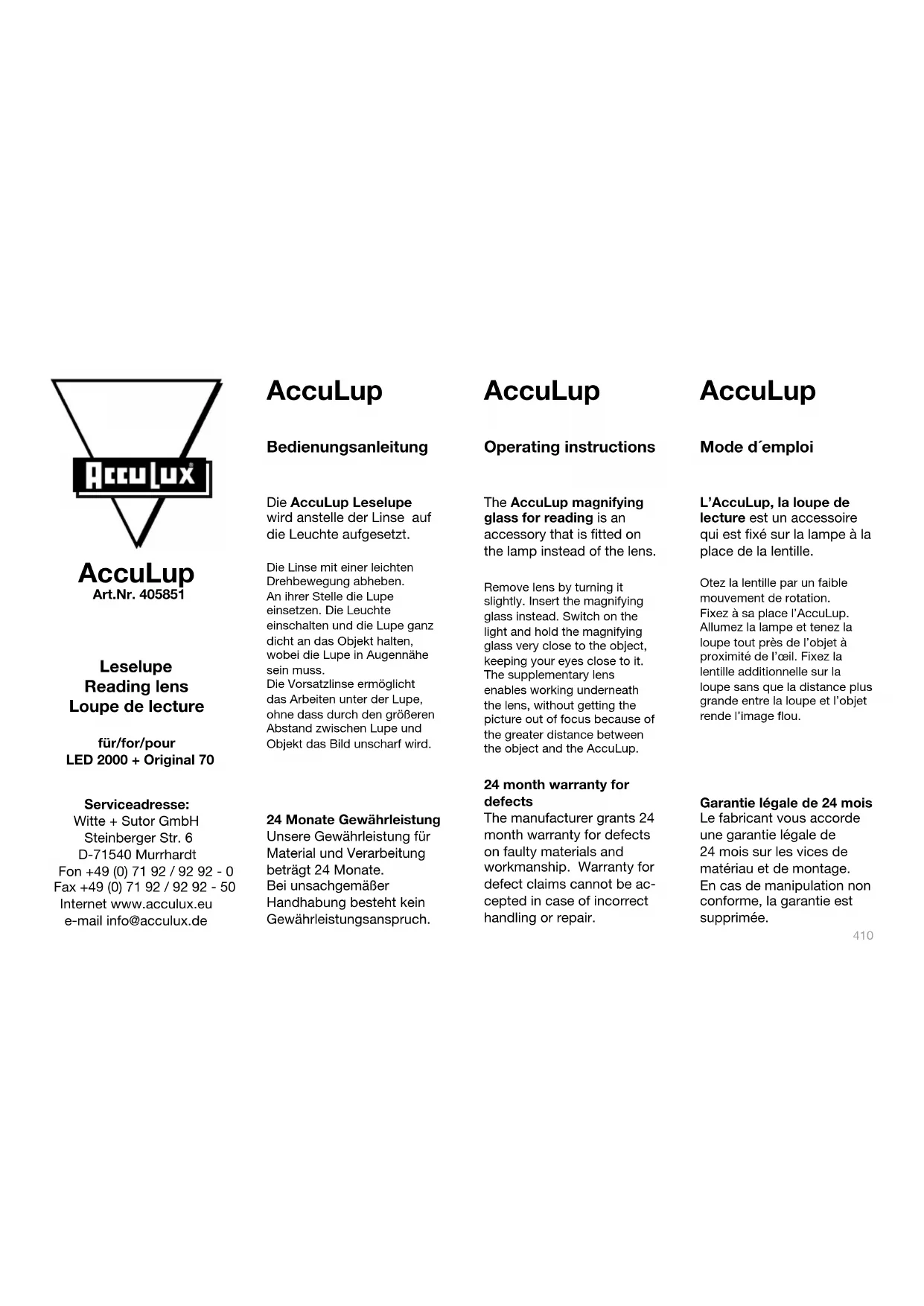 Retrouvez gratuitement la notice de l'appareil AccuLup AccuLux au format PDF.