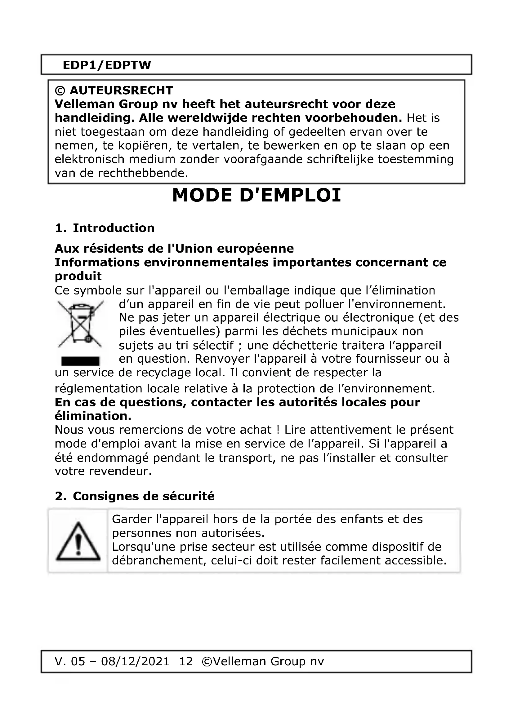 V. 05 – 08/12/2021 14 ©Velleman Group nv
