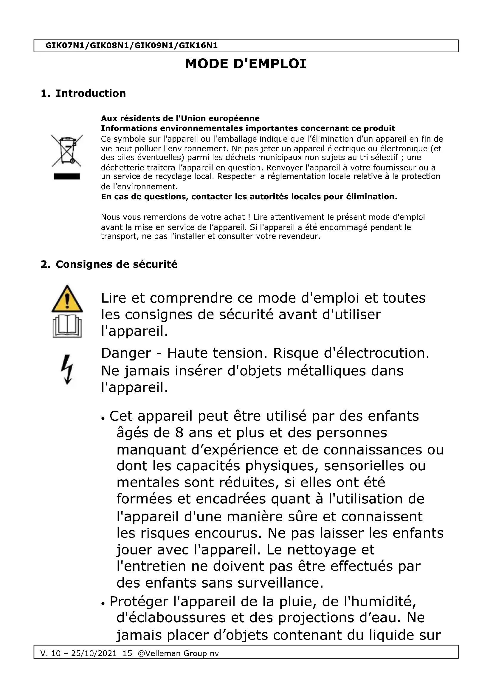 Velleman Group nv est l’ayant droit des droits d’auteur de ce mode d'emploi. Tous droits mondiaux réservés. Toute reproduction, traduction, copie ou diffusion, intégrale ou partielle, du contenu de ce mode d'emploi par quelque procédé ou sur tout support électronique que ce soit est interdite sans l’accord préalable écrit de l’ayant droit.GIK07N1/GIK08N1/GIK09N1/GIK16N1