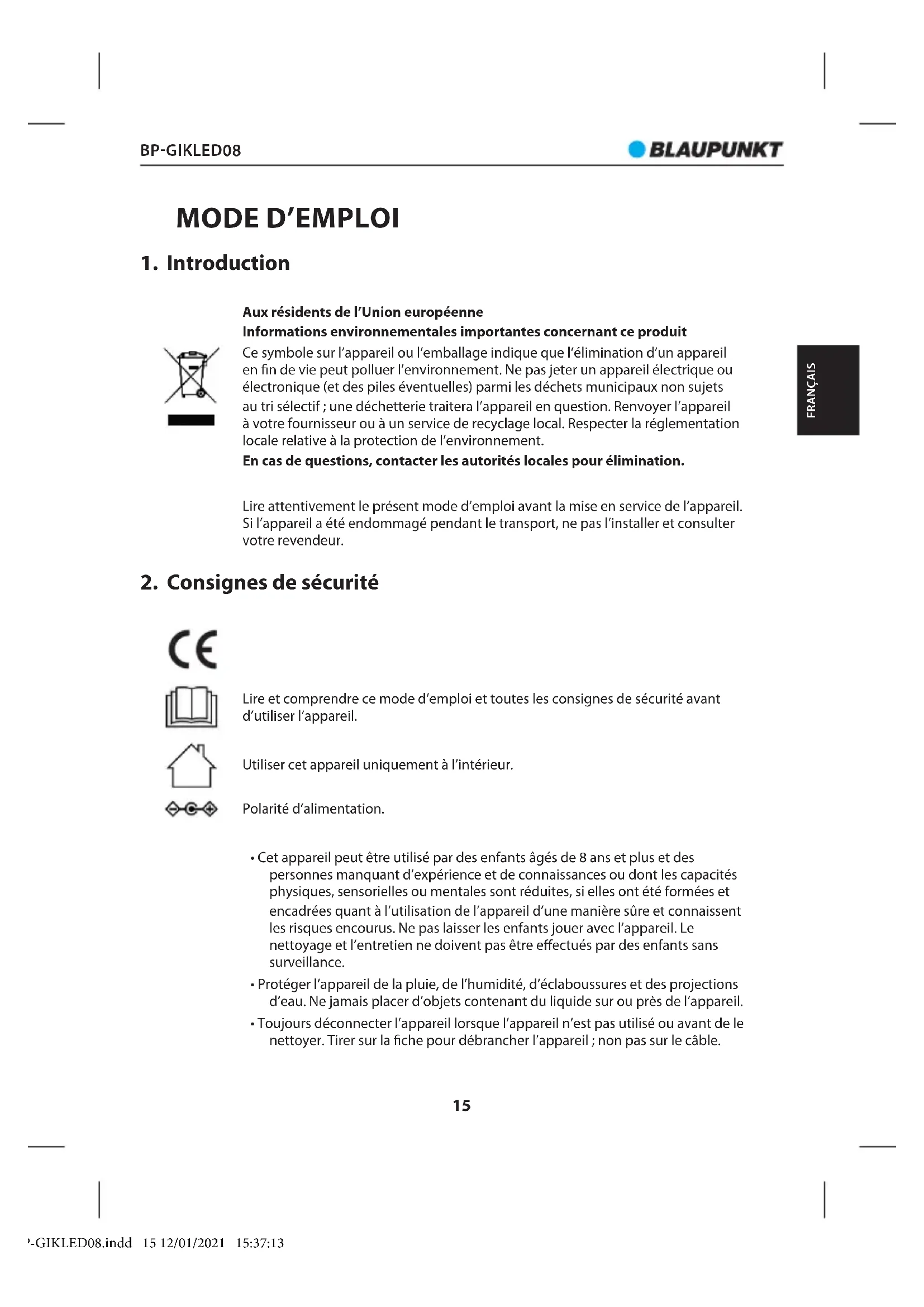 MODE D'EMPLOI BPGIKLED08 BLAUPUNKT