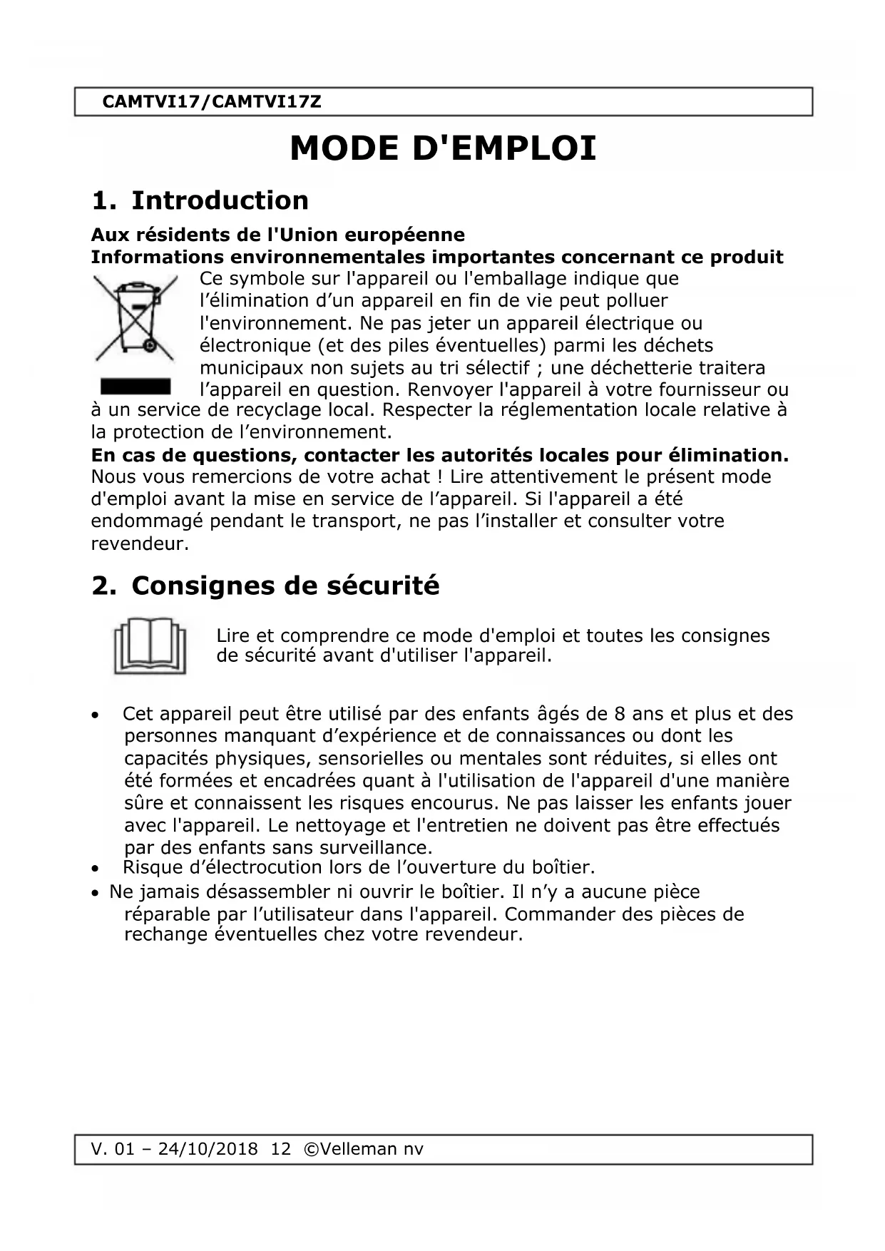 Retrouvez gratuitement la notice de l'appareil CAMTVI17 VELLEMAN au format PDF.