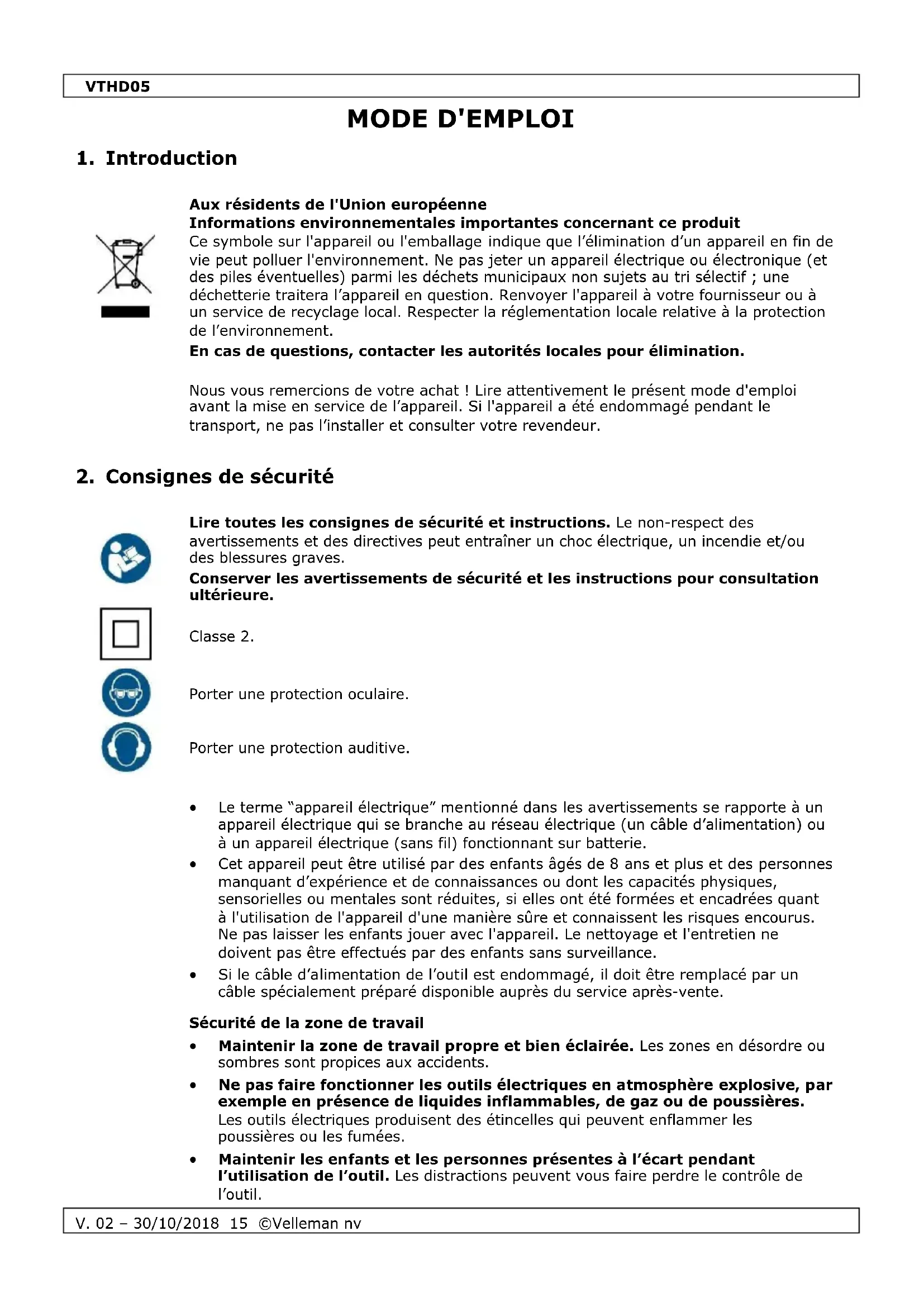 MODE D'EMPLOI VTHD05 VELLEMAN