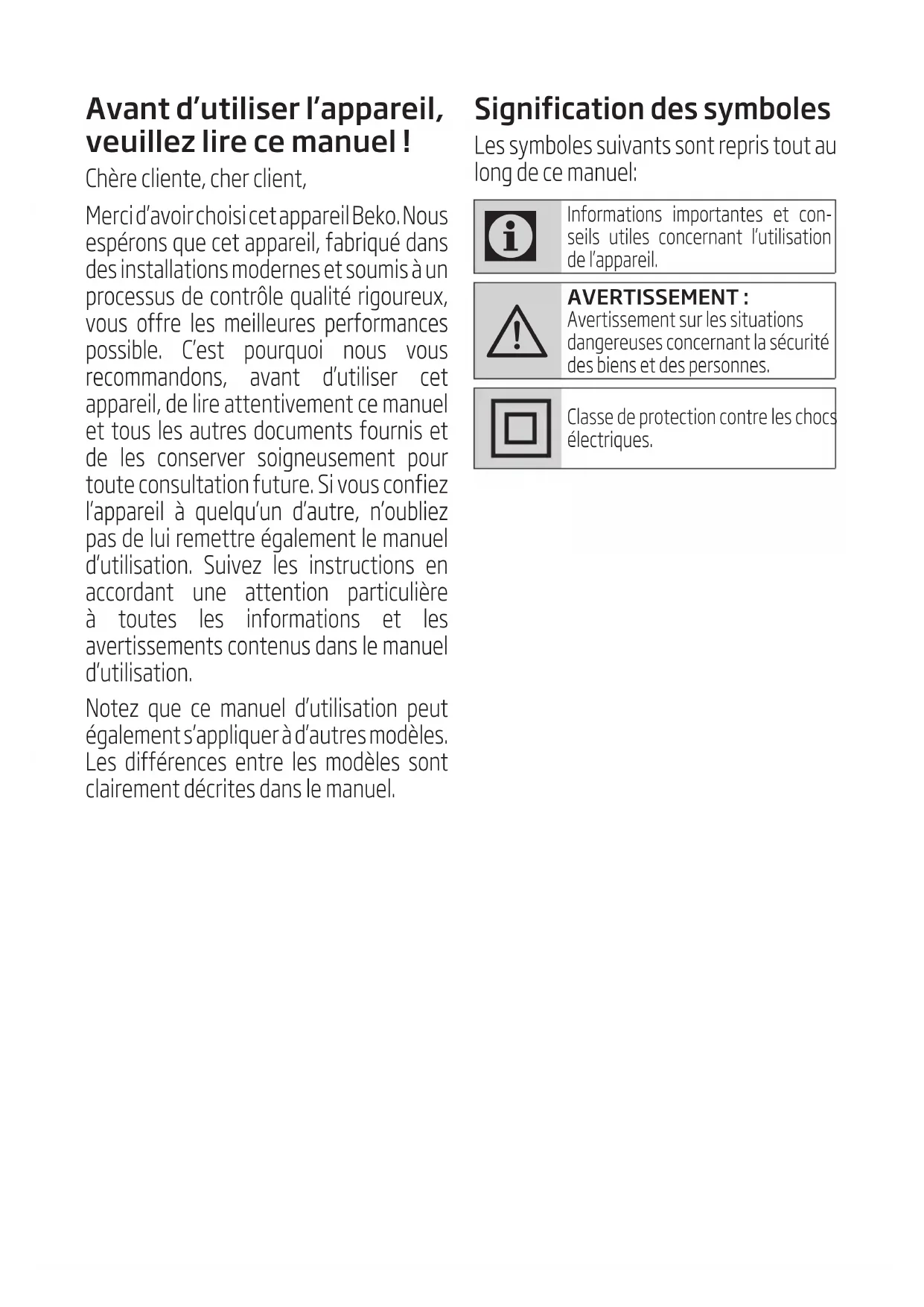 Informations importantes et con- seils utiles concernant l’utilisation de l’appareil.