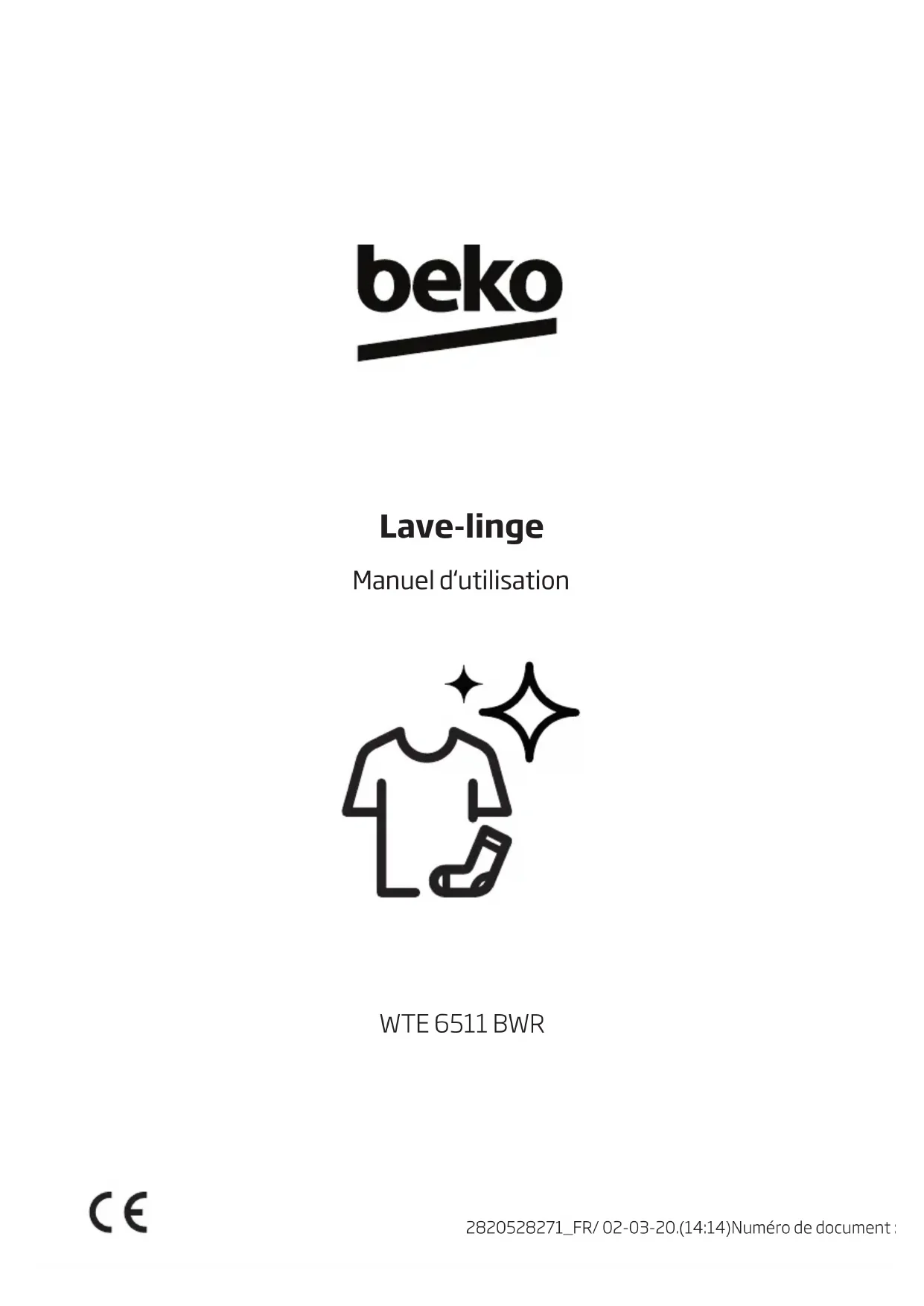 WTE 6511 BWR - Lave-linge BEKO - Notice d'utilisation et mode d'emploi gratuit