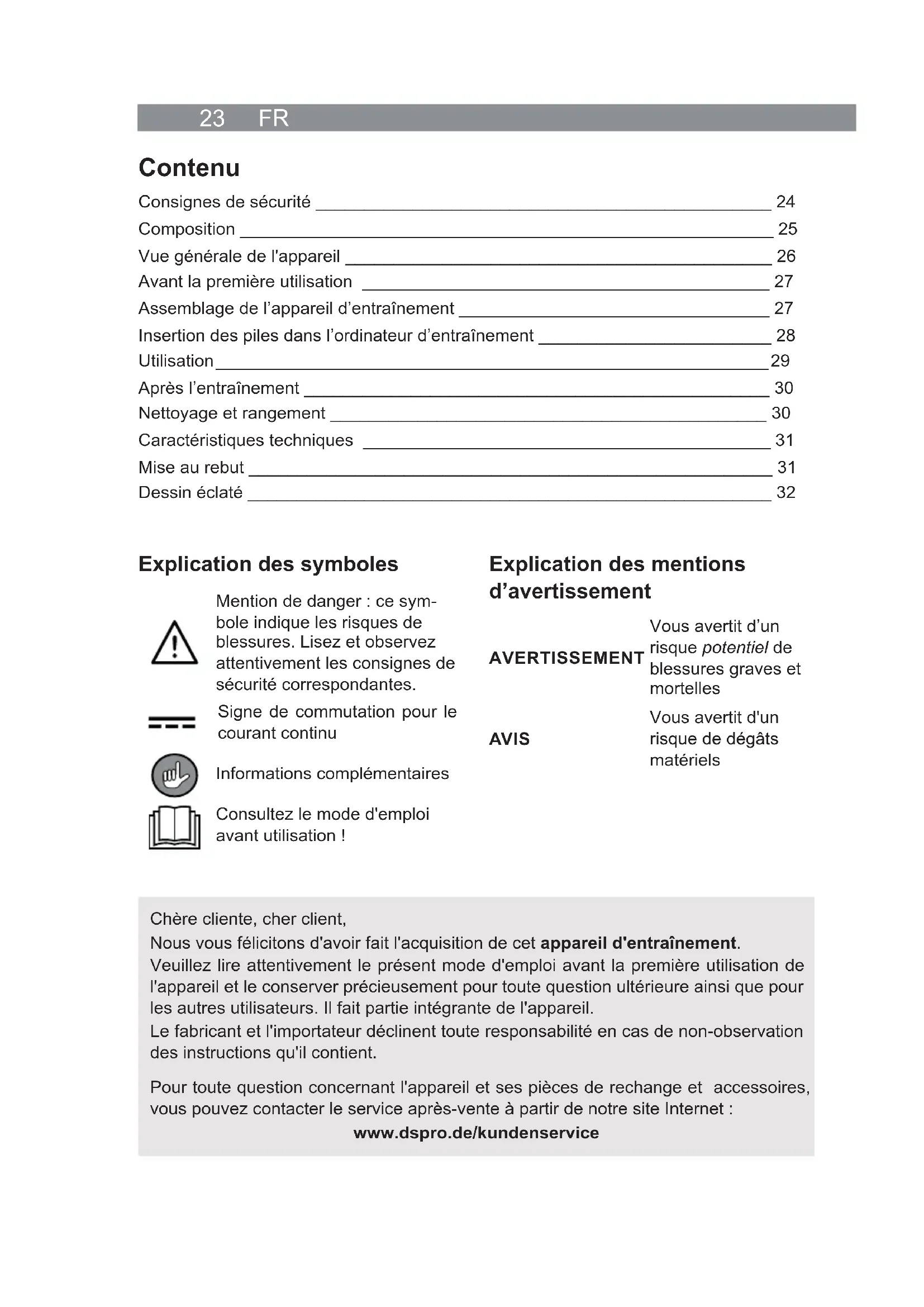 Mode d’emploi à partir de la page 23
