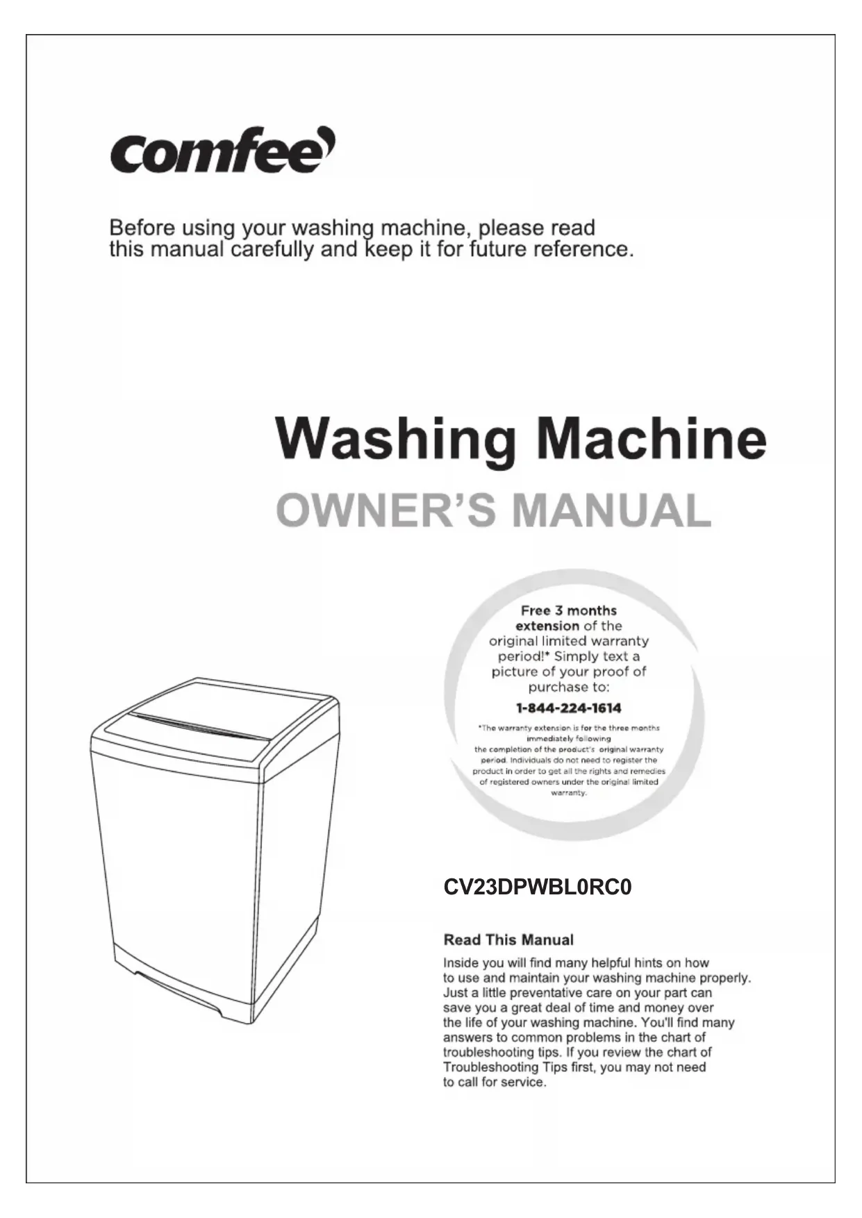CV23DPWBL0RC0 - Machine à laver COMFEE - Notice d'utilisation et mode d'emploi gratuit