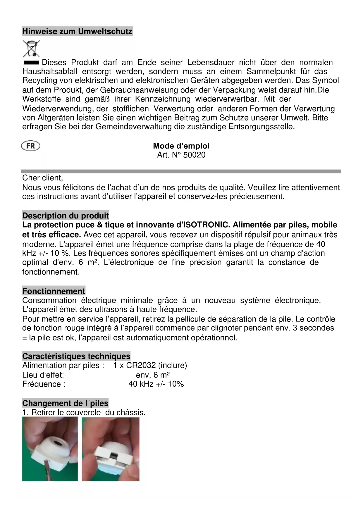 50020 - Lutte antiparasitaire Isotronic - Notice d'utilisation et mode d'emploi gratuit