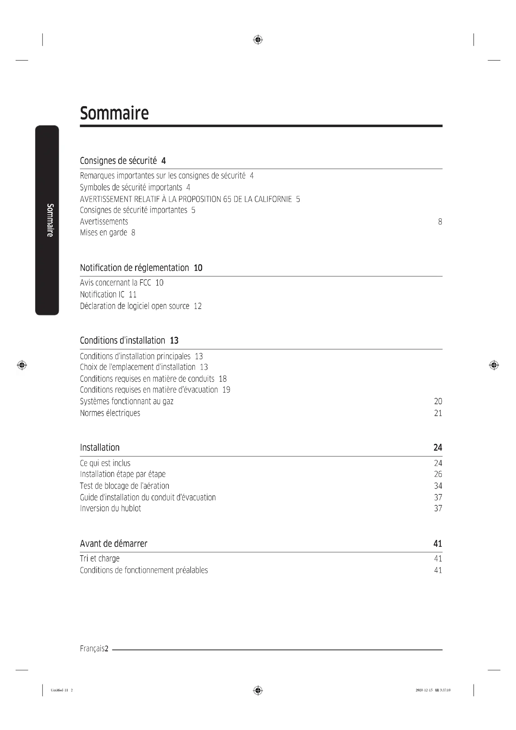 - L'installation et l'entretien doivent être effectués par un installateur qualié, un réparateur agréé ou votre fournisseur de gaz. Untitled-11 7 2020-12-15 3:37:11CONSERVEZ SOIGNEUSEMENT CES CONSIGNES Consignes de sécurité Français8 Consignes de sécurité Avertissements AVERTISSEMENT