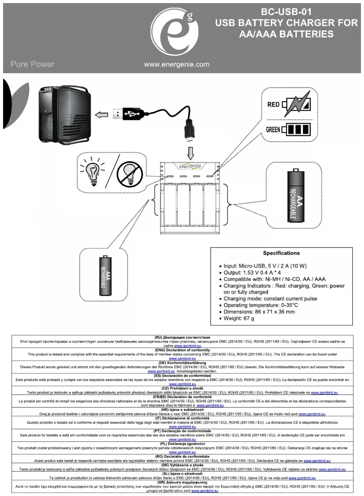 BCUSB01 - Chargeur de piles EnerGenie - Notice d'utilisation et mode d'emploi gratuit