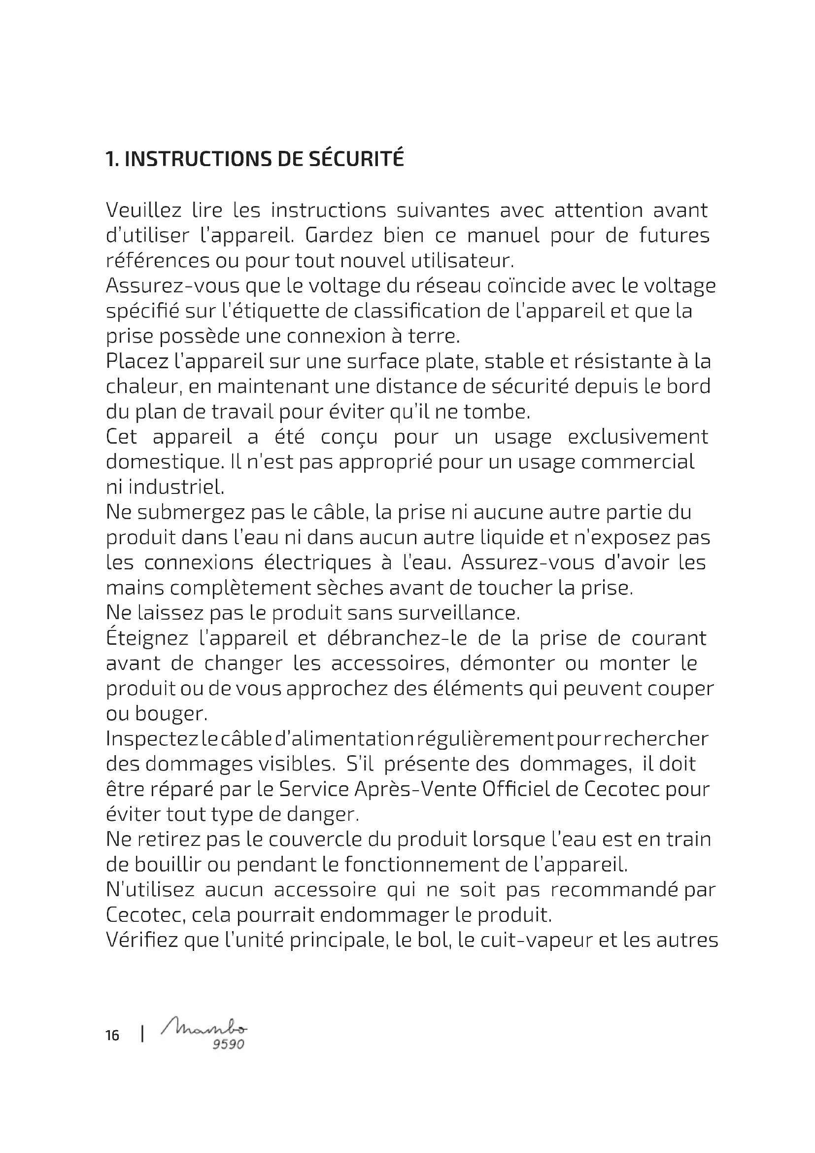Retrouvez gratuitement la notice de l'appareil Mambo 9590 CECOTEC au format PDF.
