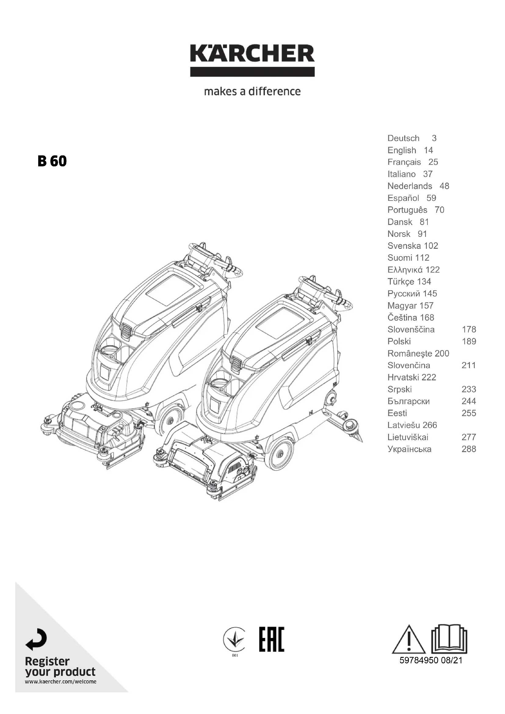 Retrouvez gratuitement la notice de l'appareil B 60 W Bp Kärcher au format PDF.