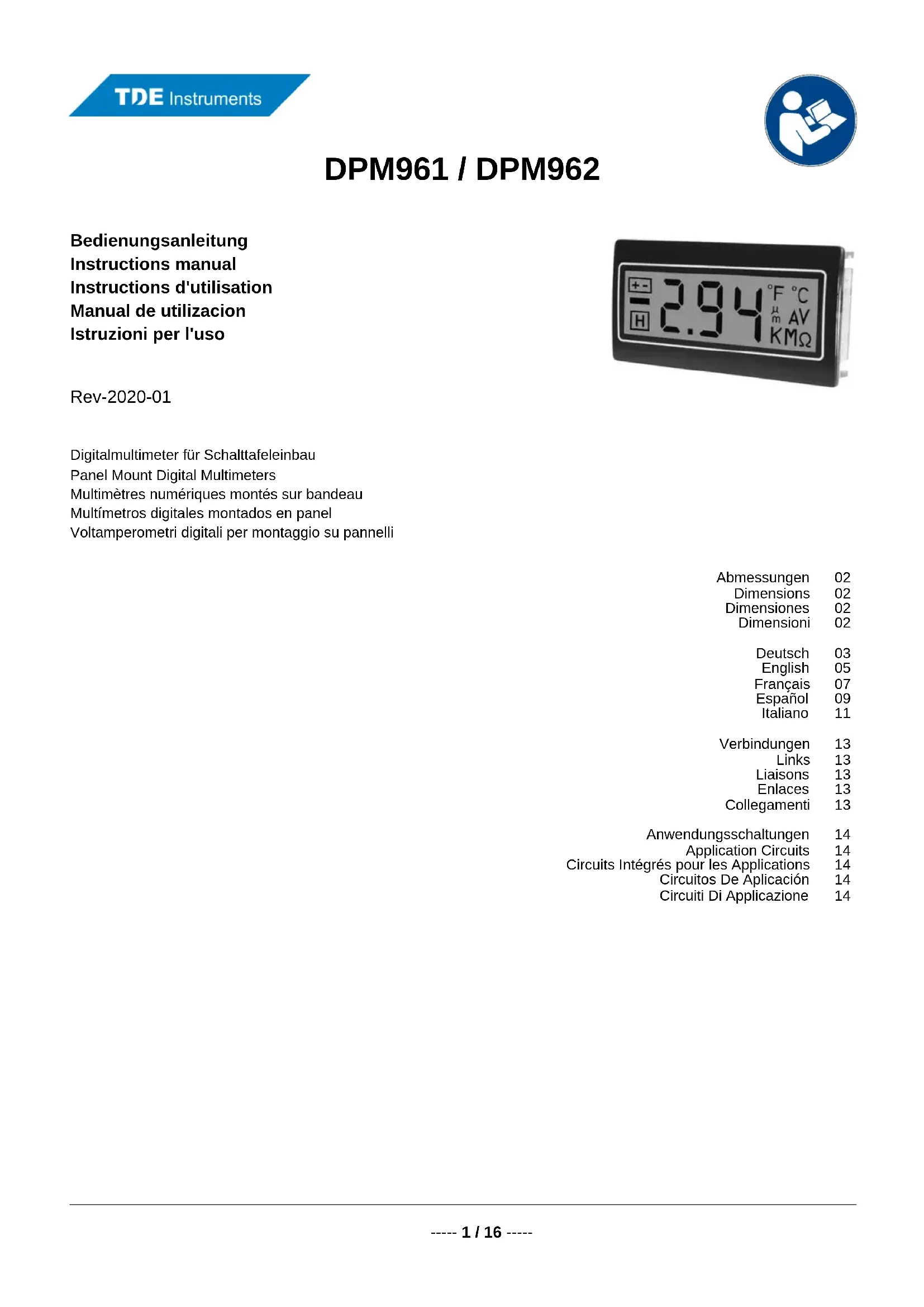 DPM961 - équipements de mesure TDE Instruments - Notice d'utilisation et mode d'emploi gratuit