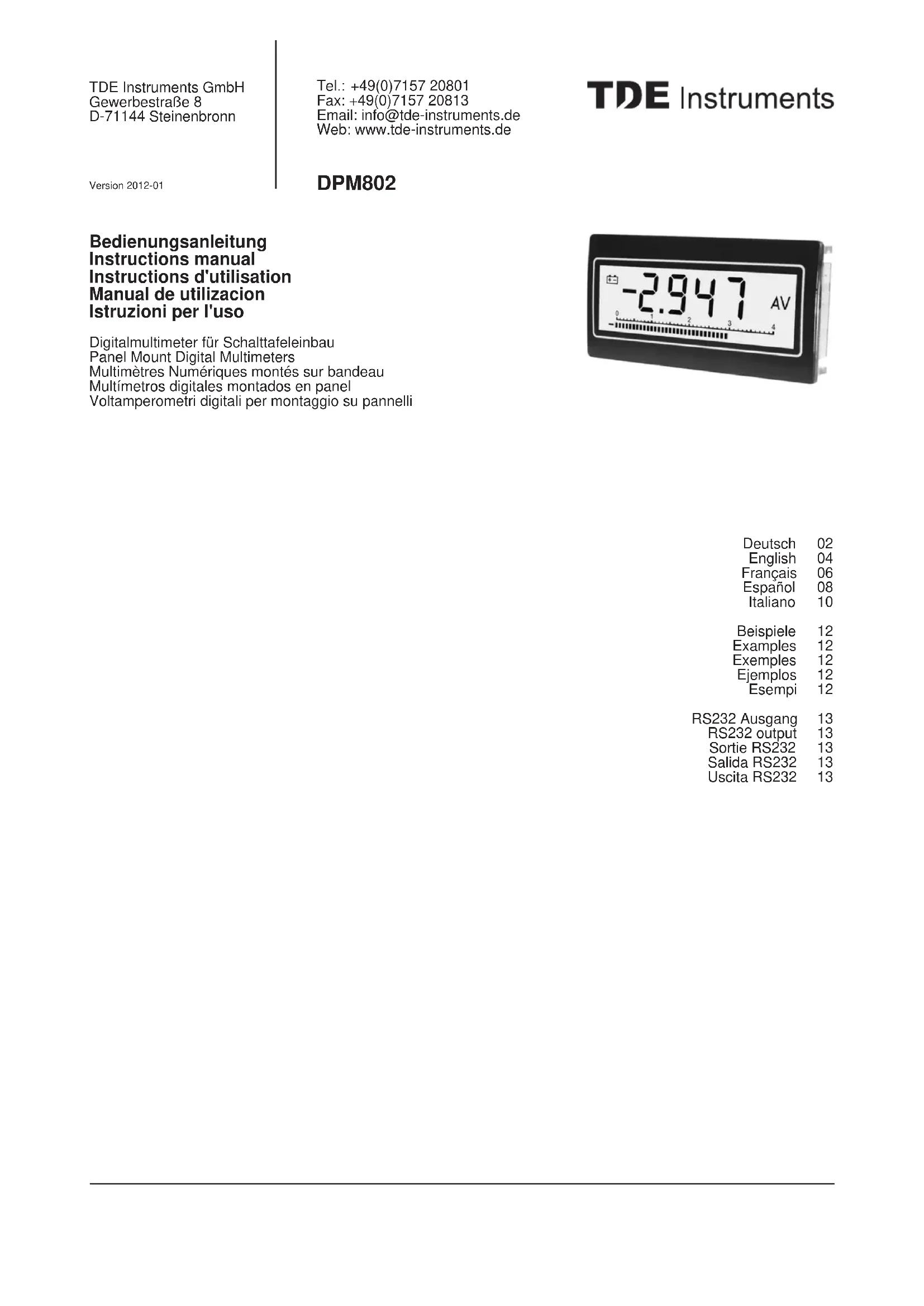 DPM802 - équipements de mesure TDE Instruments - Notice d'utilisation et mode d'emploi gratuit