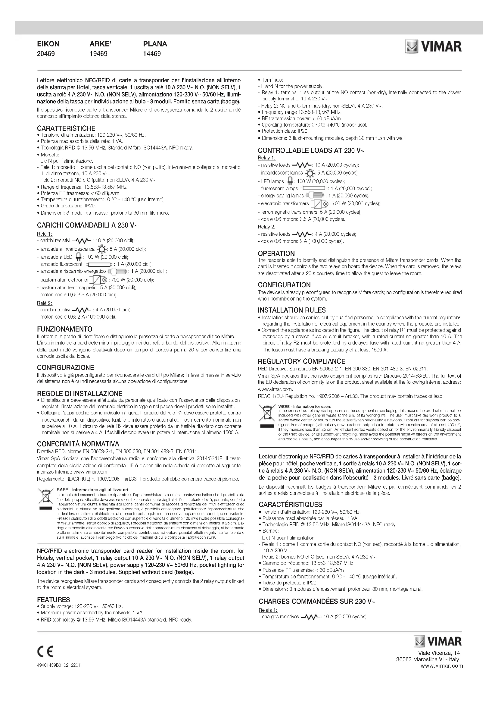 Retrouvez gratuitement la notice de l'appareil 14469.SL Vimar au format PDF.