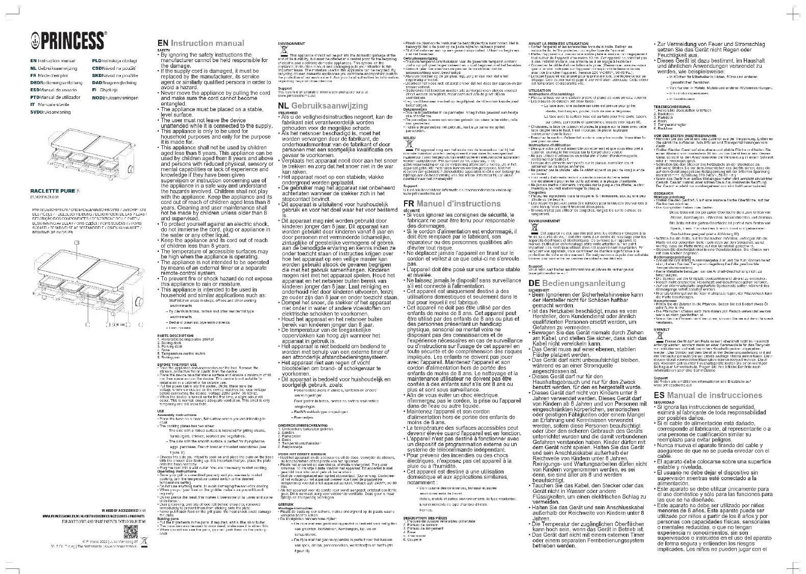 Retrouvez gratuitement la notice de l'appareil Raclette Pure 8 162918 PRINCESS au format PDF.