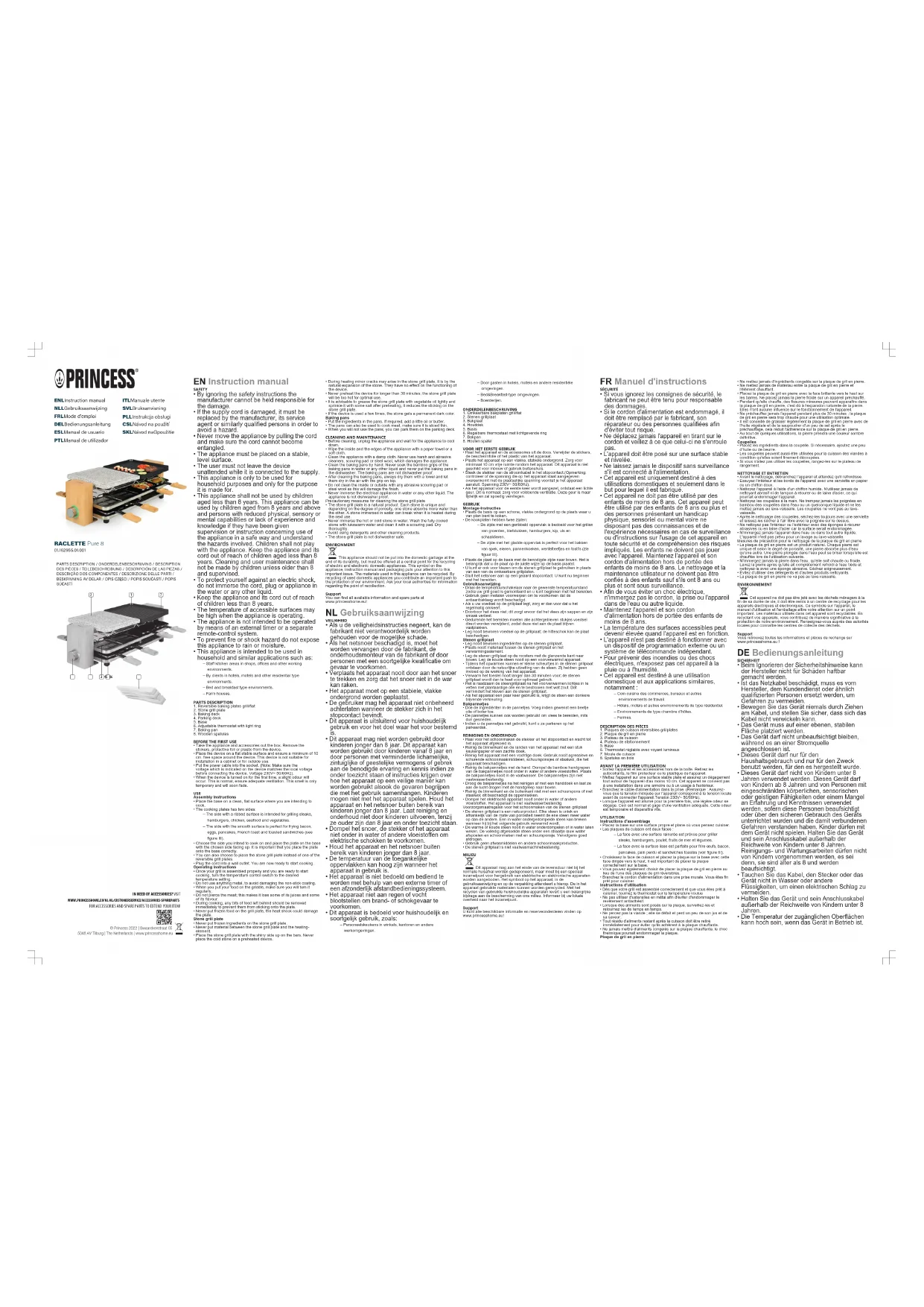 Retrouvez gratuitement la notice de l'appareil Raclette Pure 8 162955 PRINCESS au format PDF.