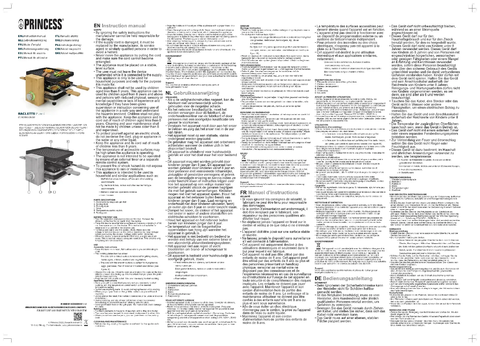 Retrouvez gratuitement la notice de l'appareil Raclette Pure 4 162950 PRINCESS au format PDF.