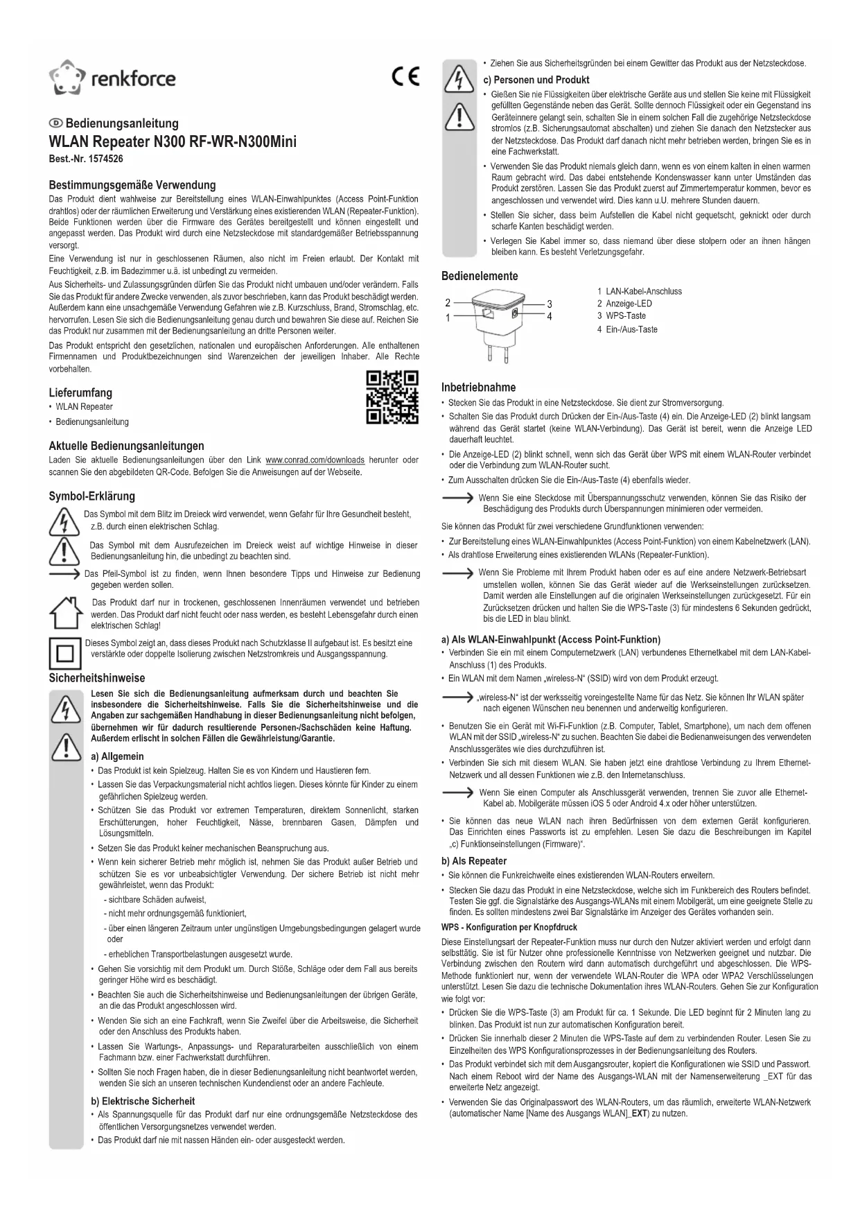 Retrouvez gratuitement la notice de l'appareil RFWRN300Mini Renkforce au format PDF.