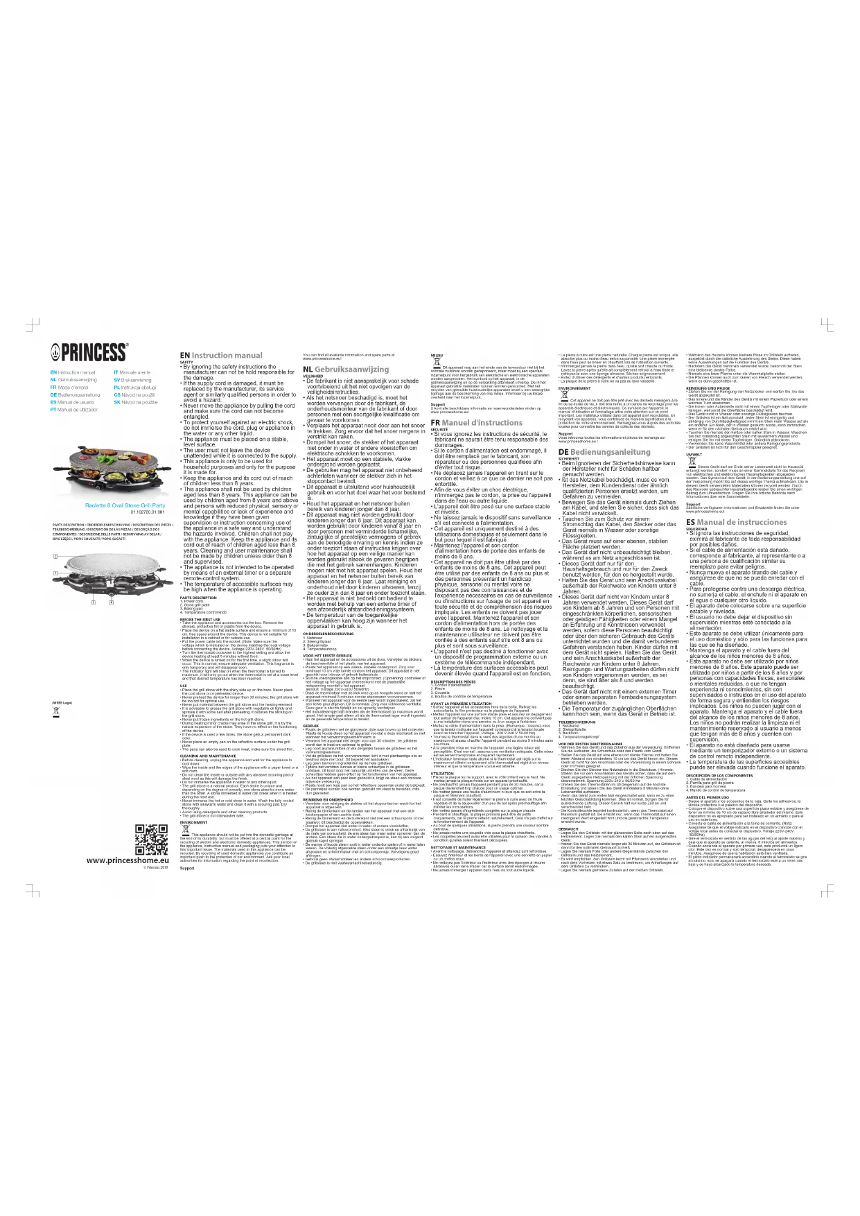 Retrouvez gratuitement la notice de l'appareil Raclette 8 Oval Stone Grill Party 162604 PRINCESS au format PDF.