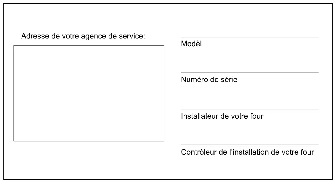 NON QUALIFIE PEUT SE BLES SER ET/OU ABÎMER LE FOUR LORS DE SON INSTALLATION ET/OU SON ENTRETIEN. Un personnel d’installation qualié est représenté soit par des personnes physiques, soit par un société, une usine, une corporation qui en personne ou par l’intermédiaire d’un représentant s’engage à et est responsable de: