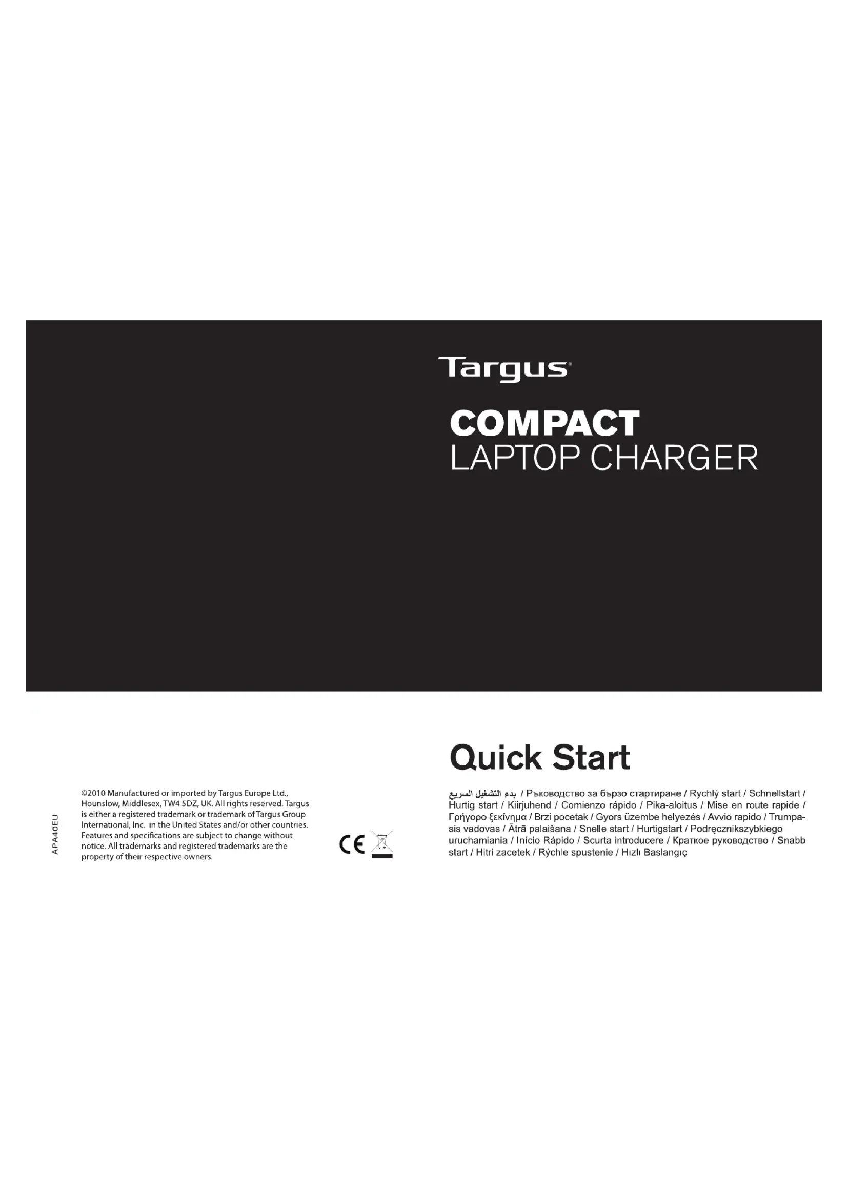 APA40EU - Chargeur de piles TARGUS - Notice d'utilisation et mode d'emploi gratuit