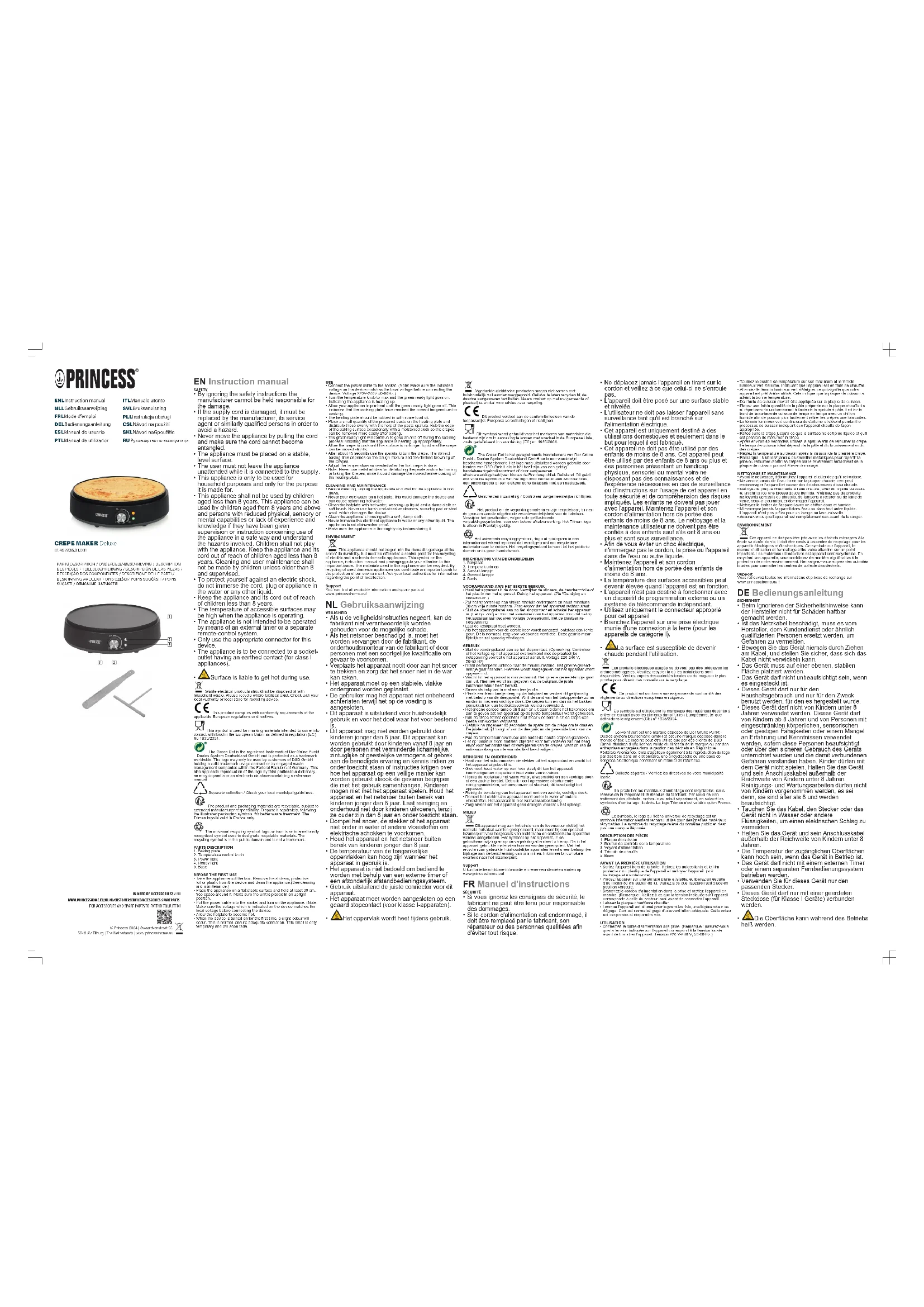 Deluxe 492235 - Crépière PRINCESS - Notice d'utilisation et mode d'emploi gratuit