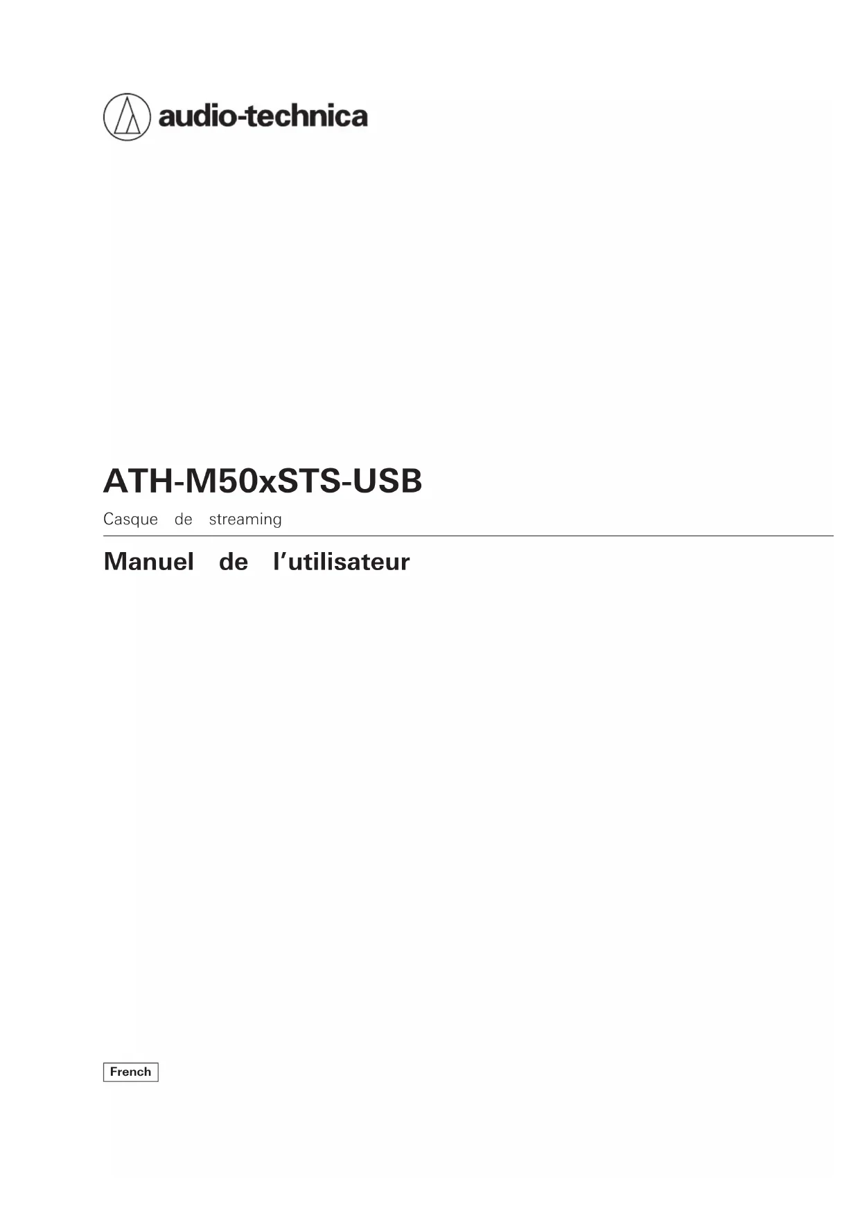 ATH-M50xSTS-USB Casque de streaming Manuel de l’utilisateur French1 Consignes de sécurité Respectez les lois en vigueur concernant l’utilisation de téléphones mobiles et casques si vous utilisez le casque en conduisant. N’utilisez pas le produit dans des endroits où l’incapacité à entendre les sons ambiants présente un risque grave (tels qu’un passage à niveau, une gare ferroviaire et des chantiers). Pour éviter d’endommager votre ouïe, n’augmentez pas trop le volume. L’écoute prolongée de sons forts peut provoquer une perte auditive temporaire ou permanente. Cessez d’utiliser le produit en cas d’irritation cutanée découlant d’un contact direct avec celui-ci. Veillez à ne pas démonter, modifier ou tenter de réparer le produit. Prenez garde à ne pas vous pincer entre la coque et le bras du produit.2 Pour les clients aux États-Unis Avis de la FCC Avertissement Cet appareil est conforme à la Partie 15 du règlement de la FCC. Son fonctionnement est soumis aux deux conditions suivantes : (1) Cet appareil ne doit pas causer d’interférence nocive et (2) cet appareil doit accepter les interférences reçues, y compris les interférences pouvant provoquer un fonctionnement indésirable. Attention Vous êtes averti que tout changement ou modification non expressément approuvé dans ce manuel est susceptible d’annuler votre droit d’utilisation de cet appareil. Remarque : Cet appareil a fait l’objet de tests afin de vérifier sa conformité avec les limites relatives aux appareils numériques de classe B, conformément à la partie 15 du règlement de la FCC. Ces limites ont pour vocation d’offrir une protection raisonnable contre les interférences nocives en installation résidentielle. Cet appareil génère, utilise et peut émettre des fréquences radioélectriques et provoquer, en cas d’installation et d’utilisation non conformes aux instructions, des interférences préjudiciables à la réception des signaux radio. Toutefois, il n’y a pas de garantie que des interférences ne se produiront pas dans une installation particulière. Si l’appareil provoque des interférences préjudiciables à la réception radio ou télévisée, ce qui peut être déterminé en éteignant et allumant l’appareil, l’utilisateur est invité à essayer d’y remédier en prenant une ou plusieurs des mesures suivantes : − Réorienter ou déplacer l’antenne réceptrice. − Augmenter la séparation entre l’appareil et le récepteur. − Brancher l’appareil dans une prise, sur un circuit différent de celui auquel est raccordé le récepteur. − Demander de l’aide au revendeur ou à un technicien radio/TV qualifié. Contact Entreprise responsable : Audio-Technica U.S., Inc. Adresse : 1221 Commerce Drive, Stow, Ohio 44224, USA Tél : 330-686-26003 À l’attention des clients au Canada Déclaration de conformité ISDE