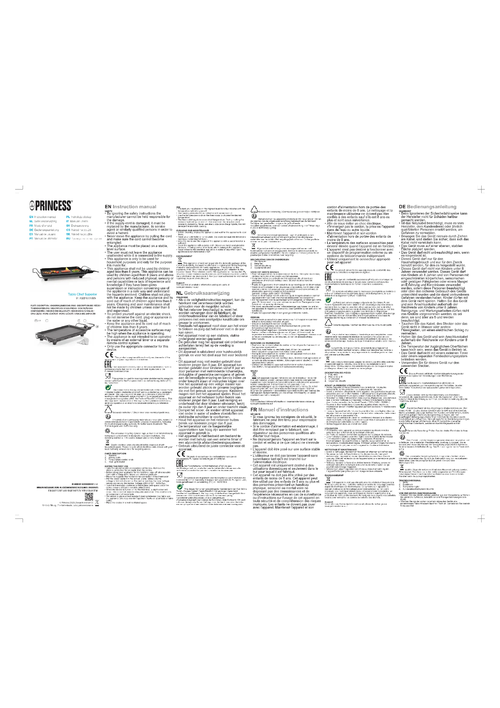 Retrouvez gratuitement la notice de l'appareil Table Chef Superior Classic 102240 PRINCESS au format PDF.