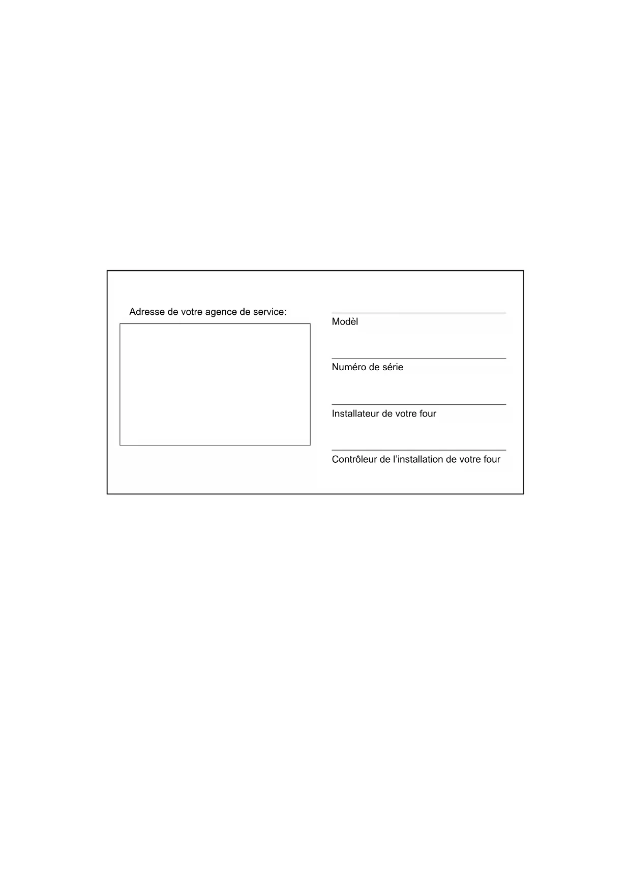 ENDROIT BIEN VISIBLE. Vous pouves vous les procerer au- près de votre fournissear de gaz local. AVERTISSEMENT Ne pas entreposer ni utiliser de l’essence ni d’autres vapeurs ou liquides inammables dans le voisinage de cet appariel, ni de tout autre appareil. Les informations données dans le présent manuel sont impor- tantes pour installer, utiliser et entretenir correctement ce four. Le respect de ces instructions et procédures permettra d’obtenir de bons résultats de cuisson et une longue durée de service sans problèmes. Veuillez lire le présent manuel et le conserver pour pouvoir vous y reporter à l’avenir. ERREURS: Les erreurs de de- scription, de typographie ou d’illustration font l’objet de corrections. Les caractéris- tiques sont sujettes à modi- cations sans préavis.
