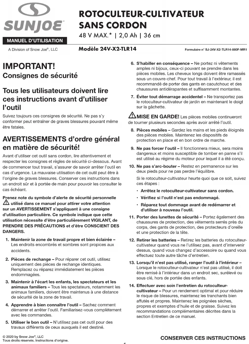 © 2020 by Snow Joe , LLCTous droits réservés. Instructions d’origine.