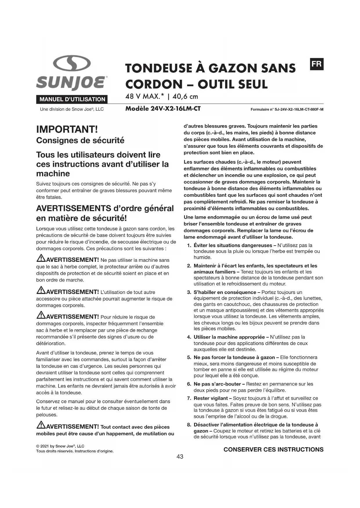 SP4142© 2021 by Snow Joe , LLCTous droits réservés. Instructions d’origine.