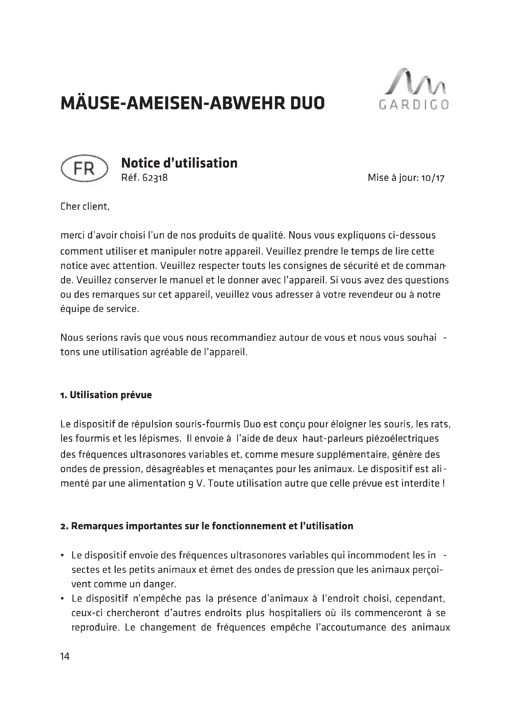 62318 - Lutte antiparasitaire Gardigo - Notice d'utilisation et mode d'emploi gratuit