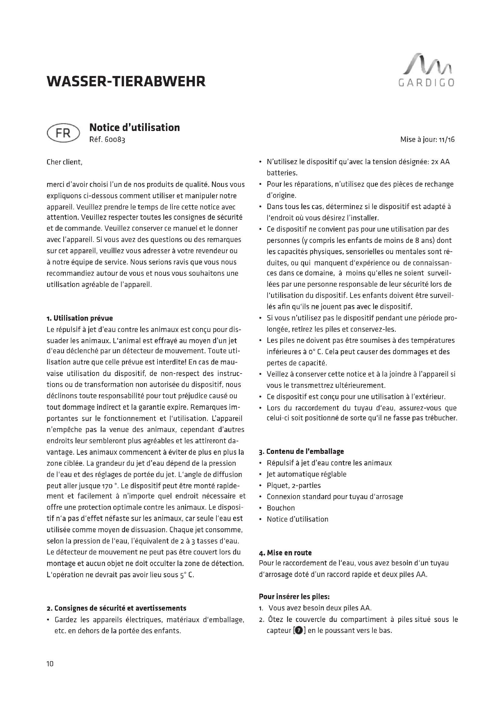 MODE D'EMPLOI 60083 Gardigo